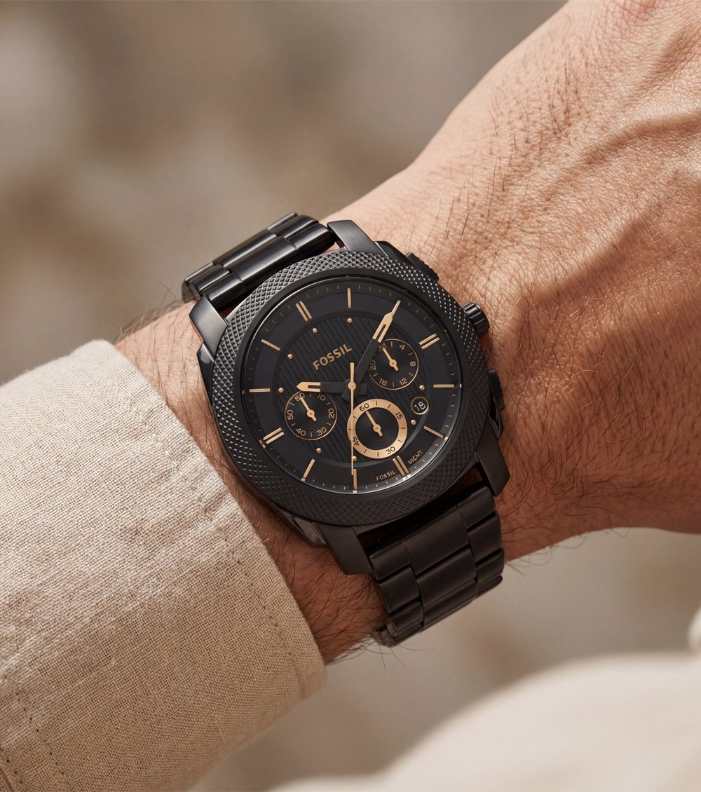 This all-black chronograph Men’s watch is crafted for men who prefer bold luxury with a commanding presence. Featuring a deep black textured dial with refined gold-tone accents, this timepiece balances sporty chronograph functionality with an unmistakably premium aesthetic.