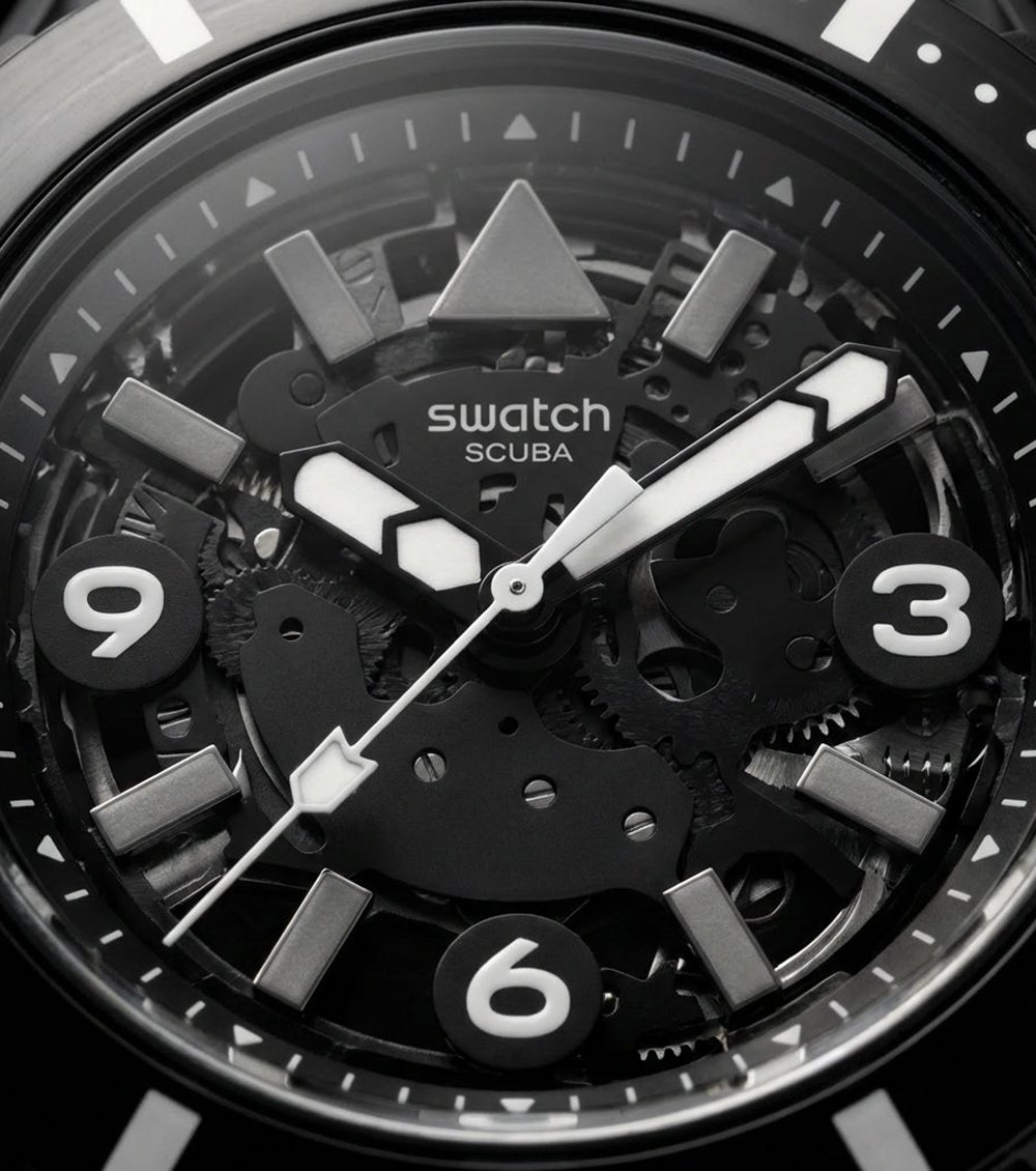 This all-black skeleton dive-style Men’s watch delivers a bold fusion of sport functionality and modern design. Featuring a partially transparent dial with exposed inner mechanics, the watch creates depth and visual intrigue while maintaining excellent legibility.