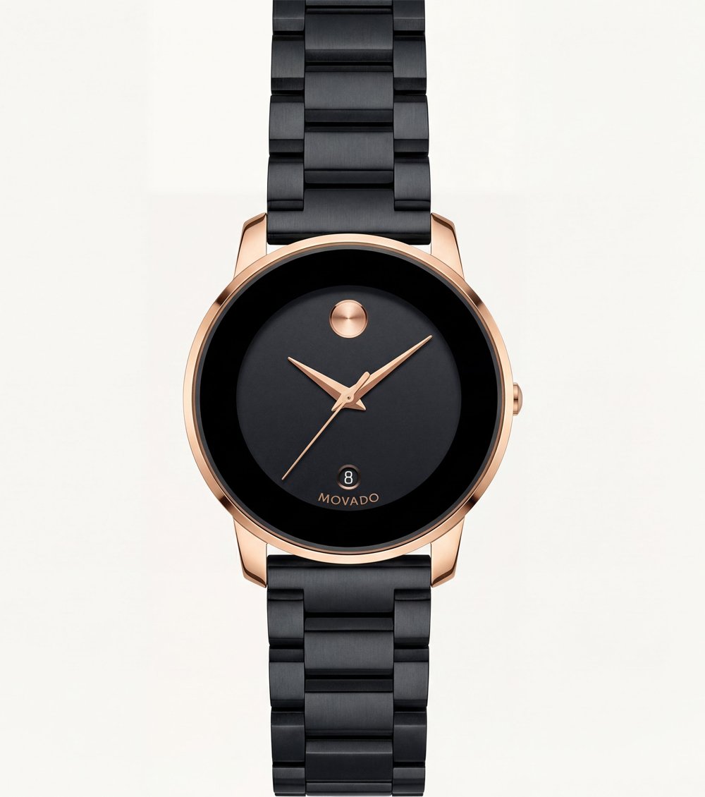 This refined minimalist watch features a deep black dial highlighted by a signature single-dot marker at the 12 oรขโ‚ฌโ„ขclock position, framed with a premium rose gold-tone bezel. The sleek black stainless steel bracelet adds a bold yet elegant contrast, making this timepiece perfect for modern men.