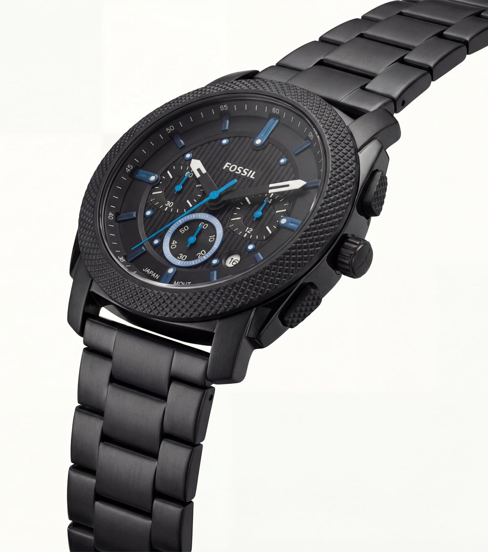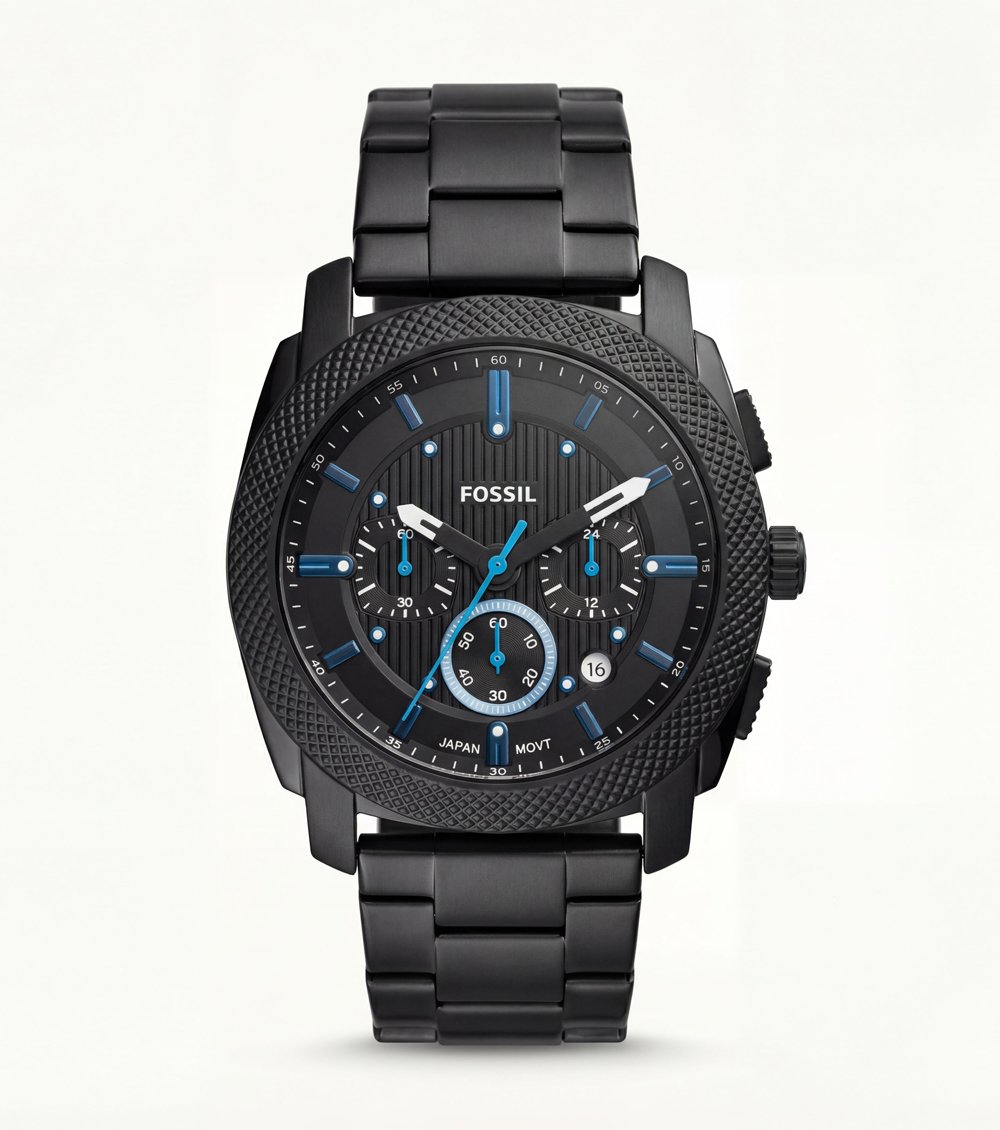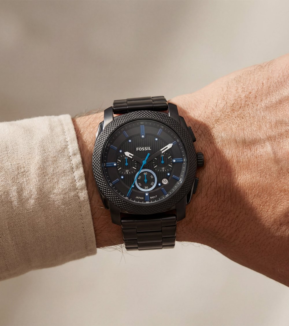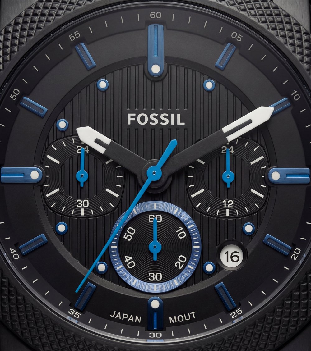 This premium chronograph-style watch features a bold matte black stainless steel body highlighted with striking blue accents. The textured bezel and multi-subdial dial design create a powerful and modern look, perfect for men who prefer a strong and sporty wrist presence.