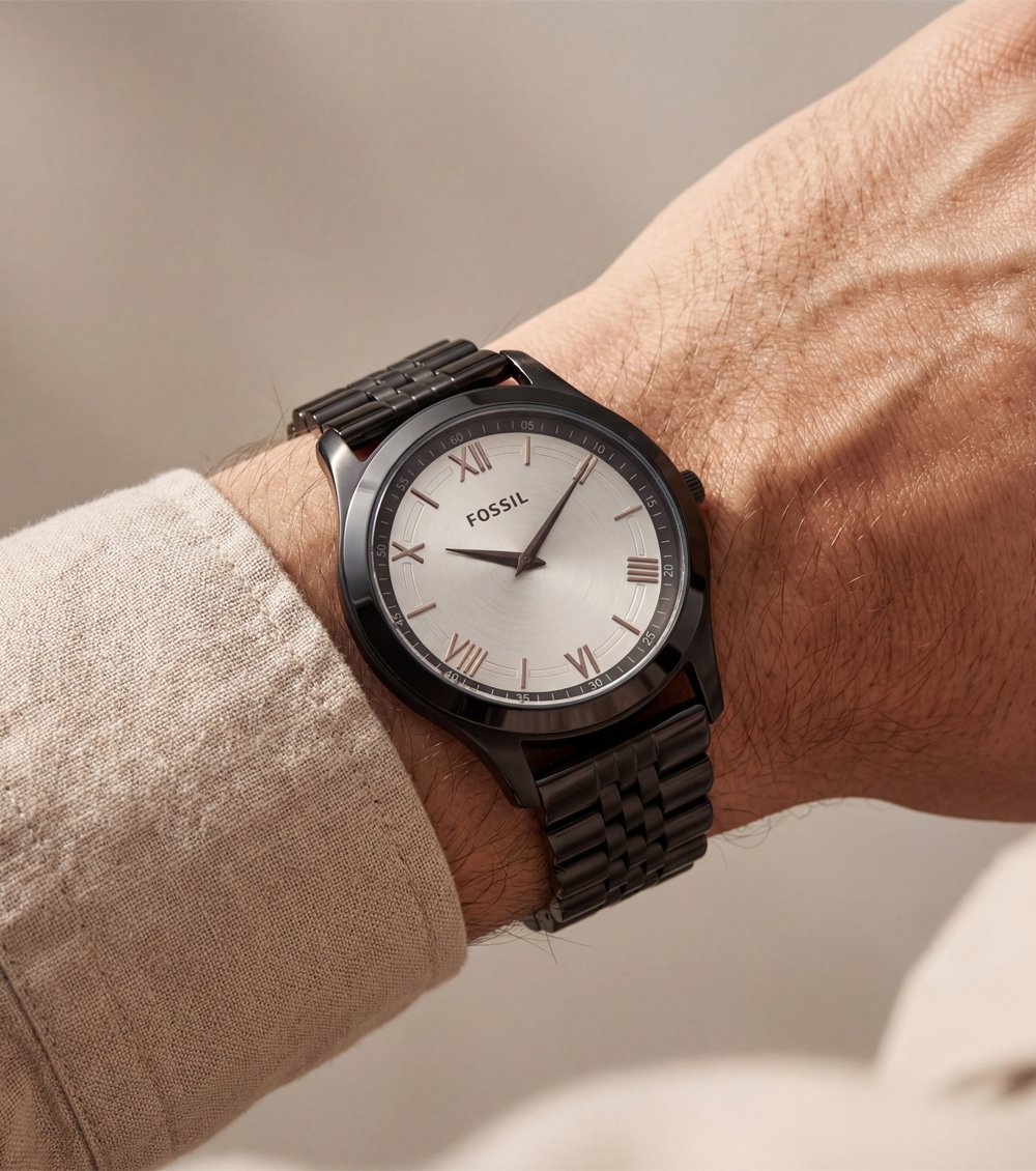 Finished in a deep matte black tone, the bracelet enhances the watchรขโฌโขs modern character while offering a comfortable and secure fit. Designed for individuals who appreciate classic dial detailing with a modern monochrome edge.