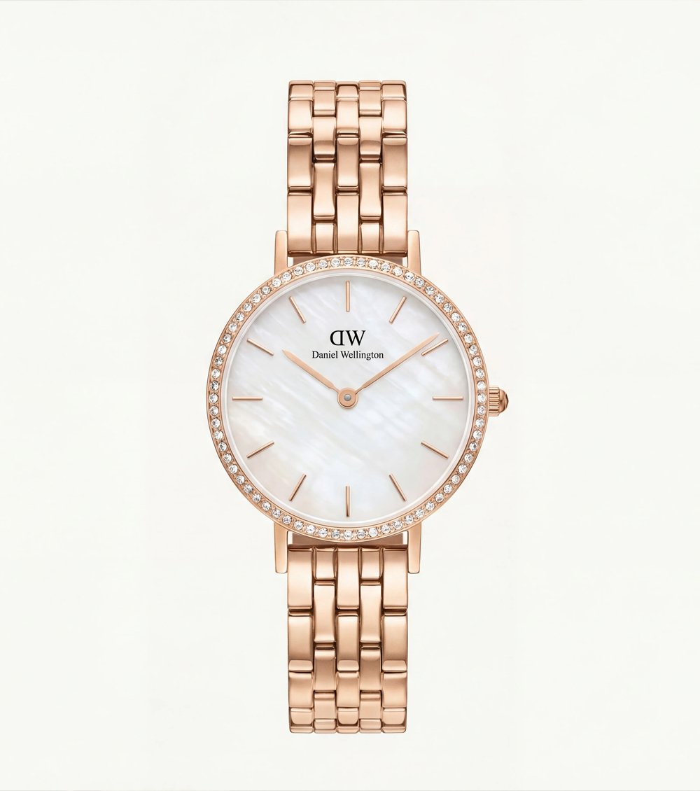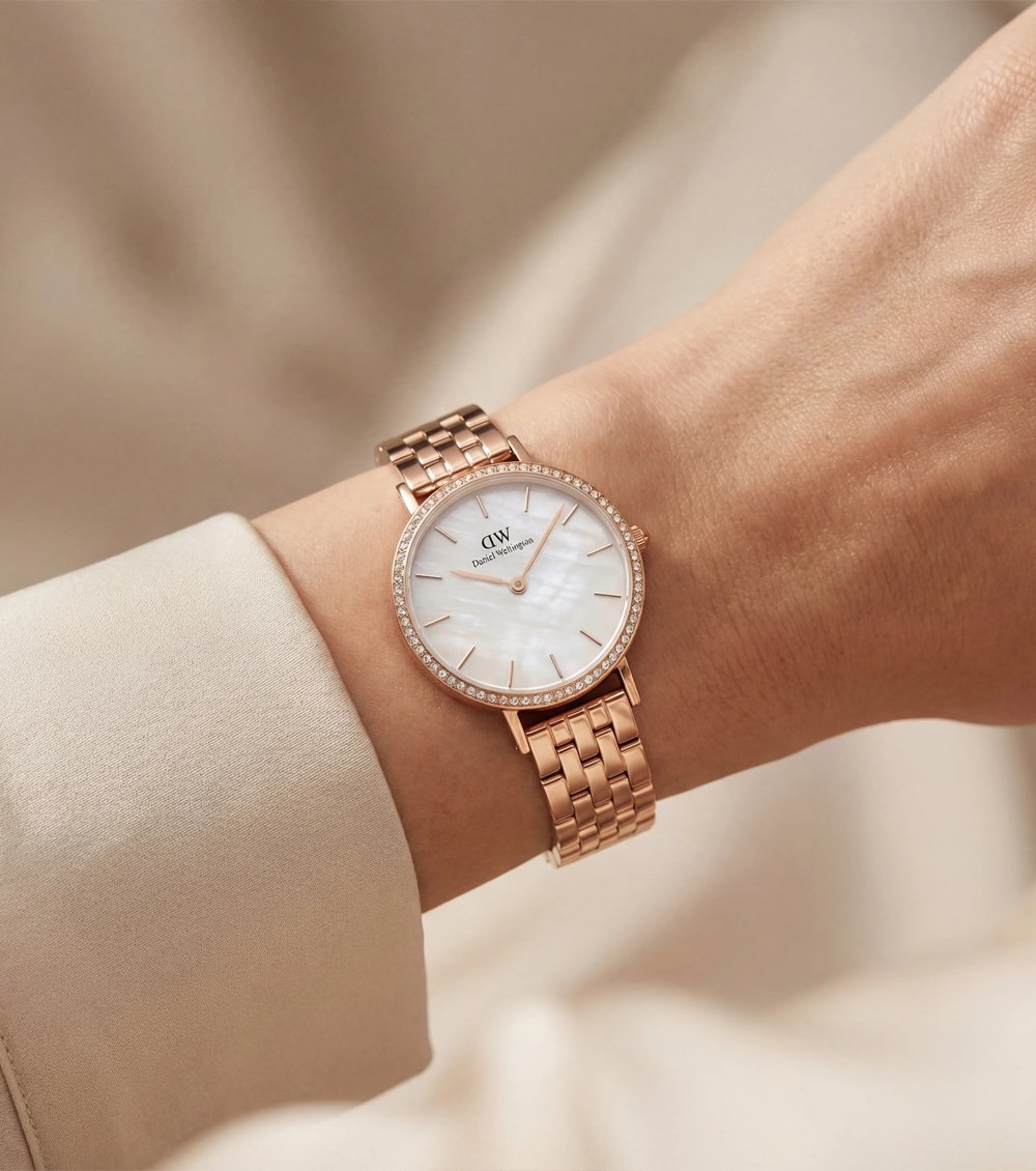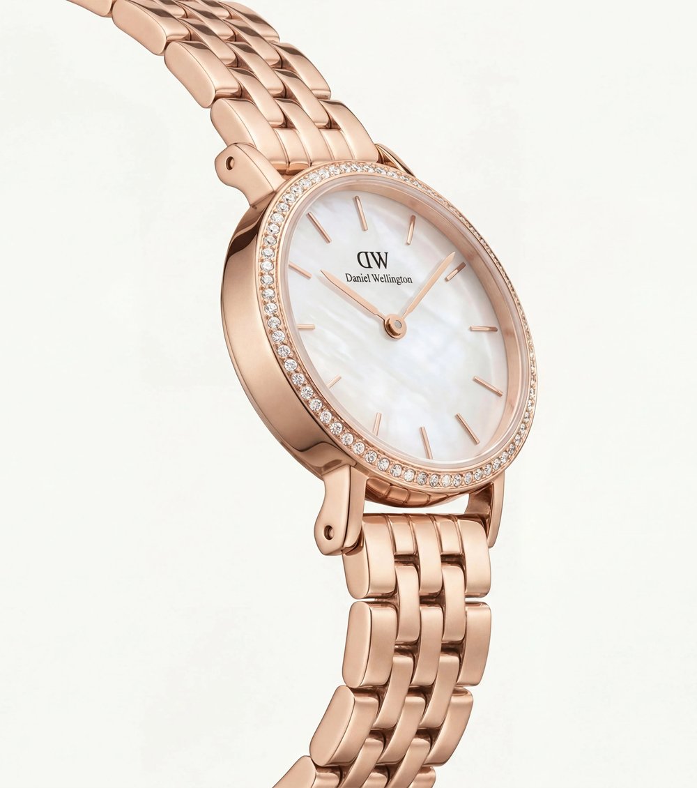 This exquisite rose gold timepiece blends delicate glamour with timeless sophistication. The luminous pearl-inspired dial creates a subtle iridescent glow, reflecting light with graceful depth and refined elegance. Each glance reveals a soft shimmer that feels effortlessly luxurious.