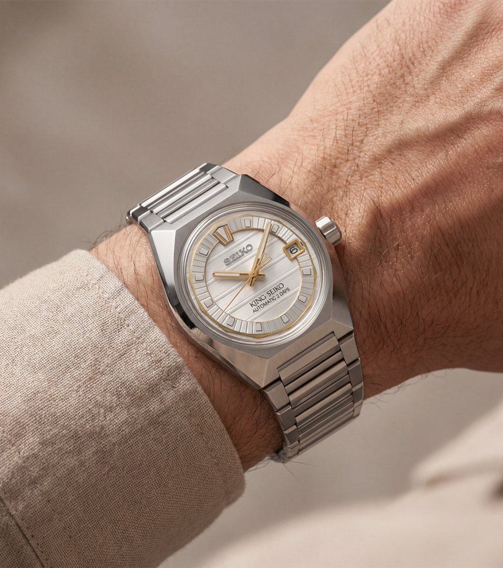 The angular integrated case design delivers a strong retro-modern presence, making the watch versatile for both formal and daily wear. A neatly framed date window enhances functionality without disturbing the symmetry of the dial. Powered by a reliable automatic movement, the watch offers extended power reserve for uninterrupted performance.