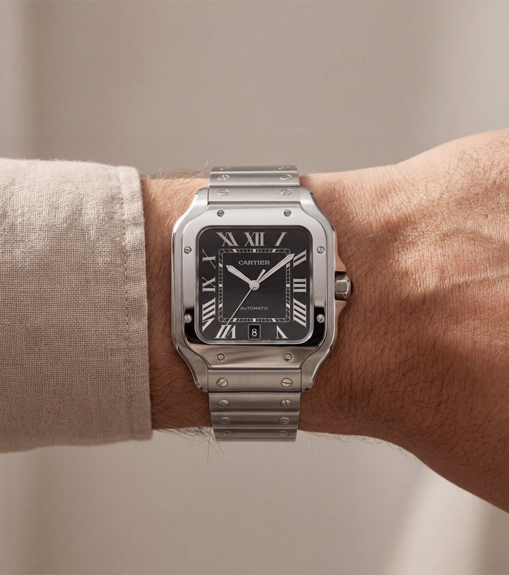 Smooth polished hands move effortlessly across the dial, maintaining a minimalist and sophisticated look. The structured bezel with exposed screw detailing adds an architectural touch, giving the watch a confident and premium wrist presence. A neatly placed date window completes the well-balanced dial layout.