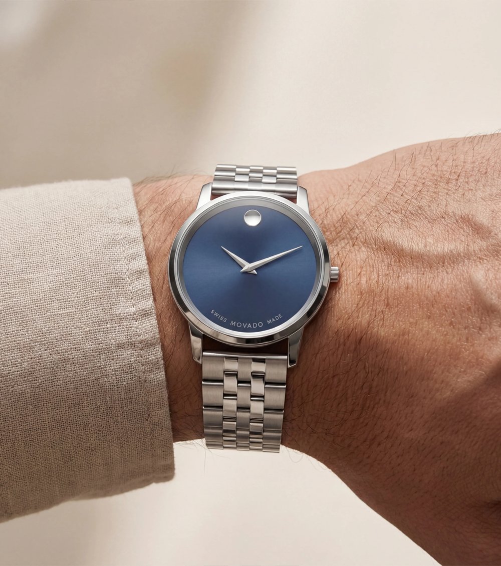 Designed for those who value modern minimalism and understated luxury, this timepiece delivers a sleek profile suitable for both formal and everyday wear. Its balanced design and premium finish make it an ideal choice for office use, formal occasions, and sophisticated daily styling. Brand: Movado.