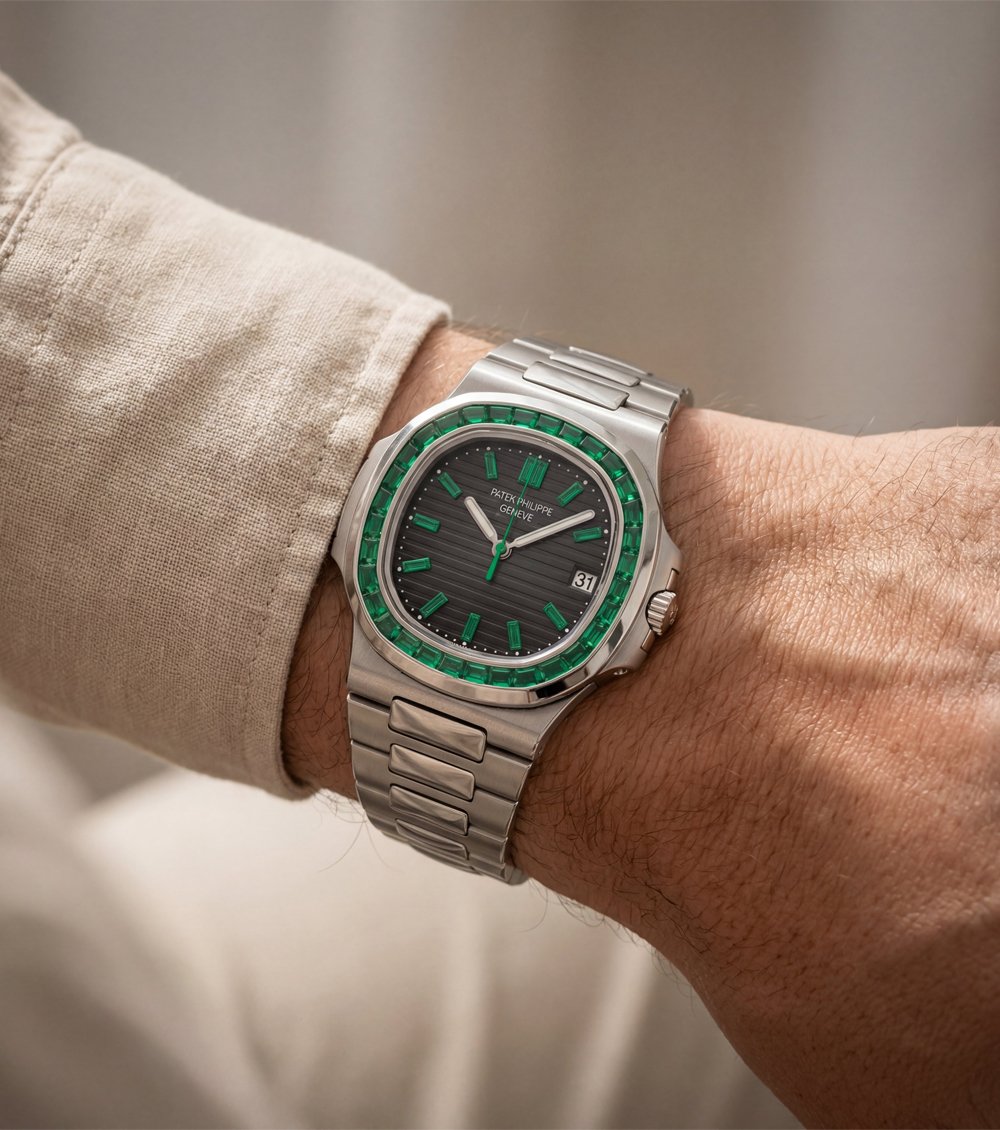 Emerald Bezel Luxury Stainless Steel Watch for Men – Elite Edition