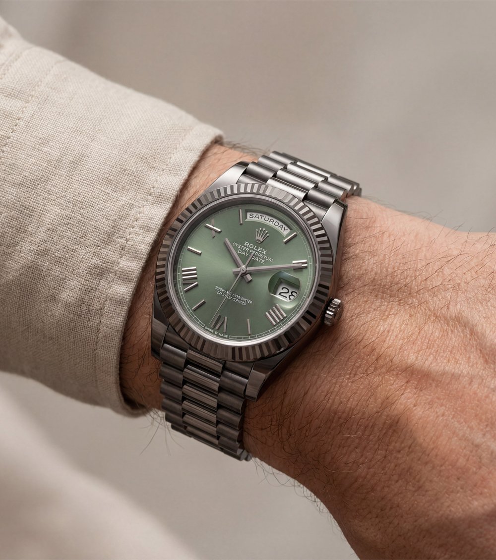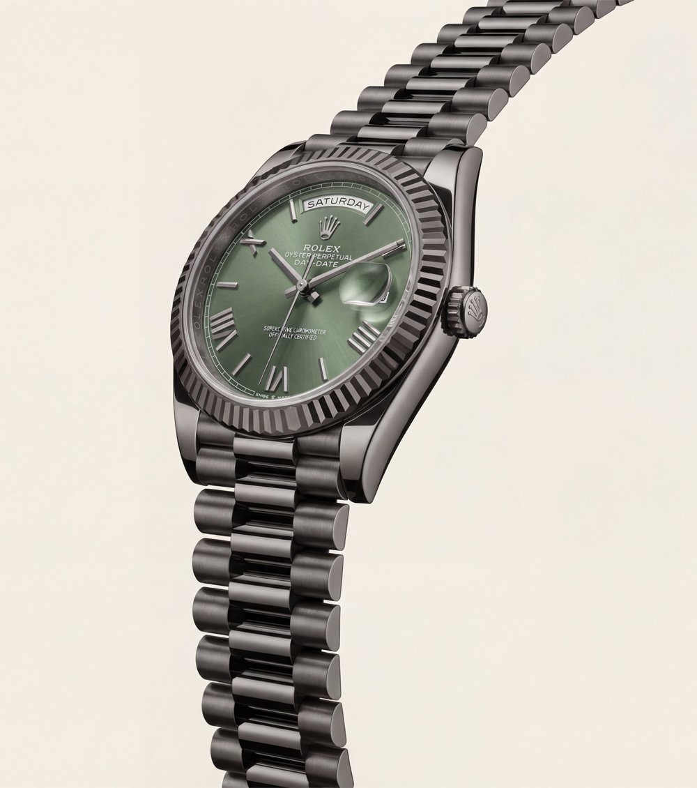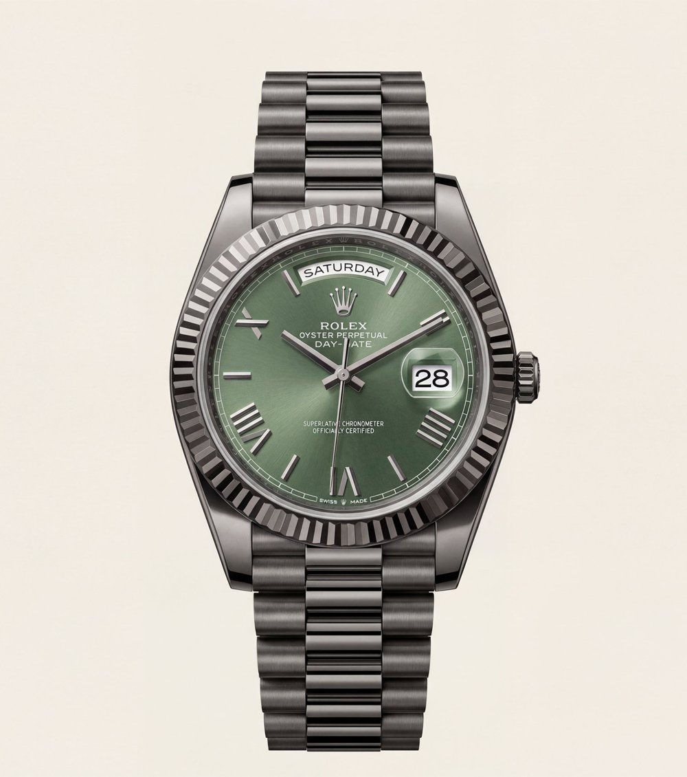 This elegant automatic watch features a rich forest-green dial paired with a bold fluted bezel, creating a refined and confident wrist presence. The deep green tone adds character and depth, while the dark-toned steel case enhances the watchรขโฌโขs modern yet timeless appeal.