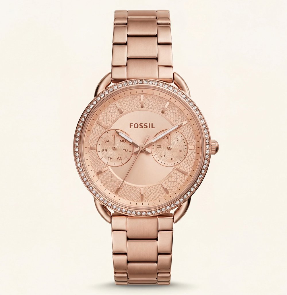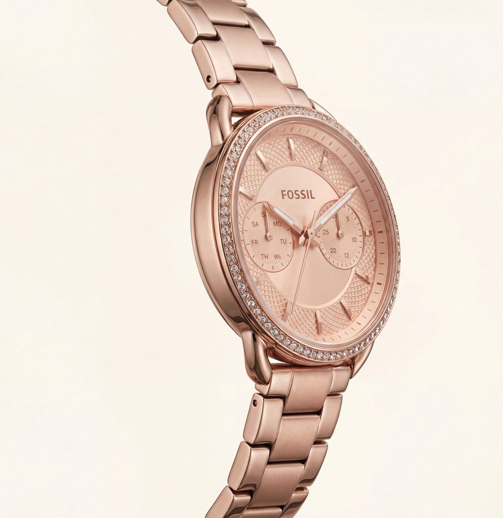 Crafted in a fully rose gold stainless steel bracelet, this timepiece delivers seamless tonal harmony โ creating a rich, jewelry-inspired presence on the wrist.