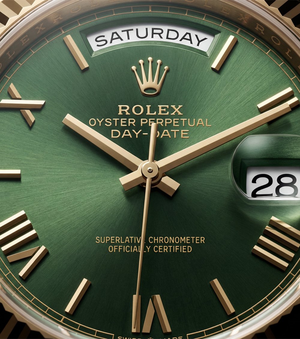 HomeShopWatch MenGold Day-Date Green Sunray Roman Dial Men’s Watch