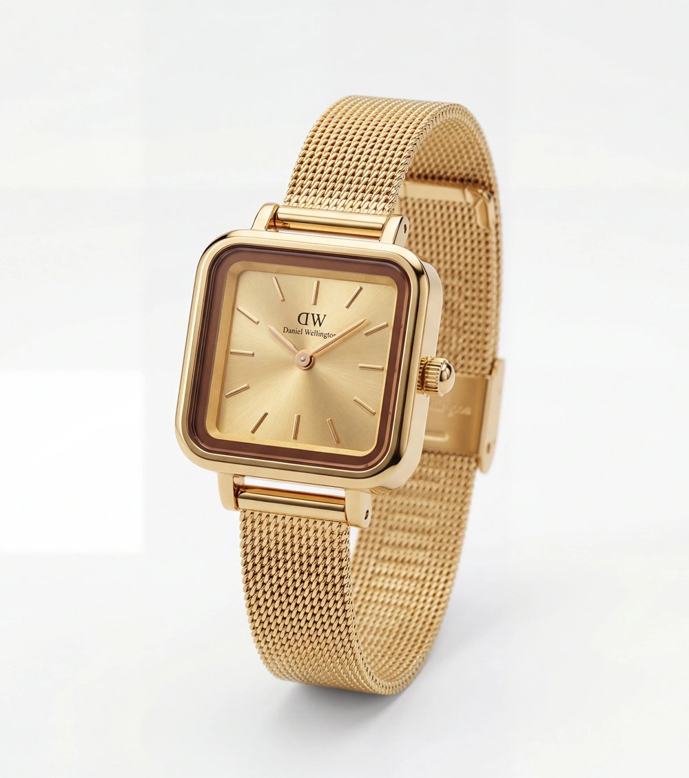 This elegant square timepiece blends a radiant champagne dial with a rich gold case, creating a luxurious monochrome aesthetic with subtle depth. The softly brushed champagne finish reflects light beautifully, adding warmth and sophistication to the minimalist design.
