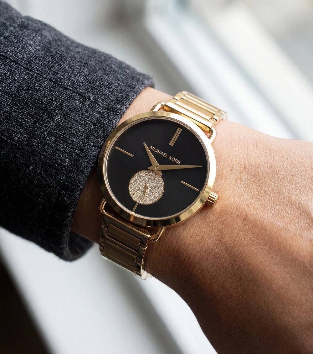 Be the first to review “Gold-Tone Black Dial Crystal Subdial Minimal Bracelet Watch” Cancel reply