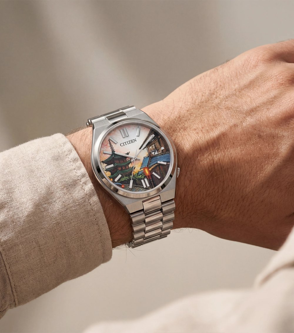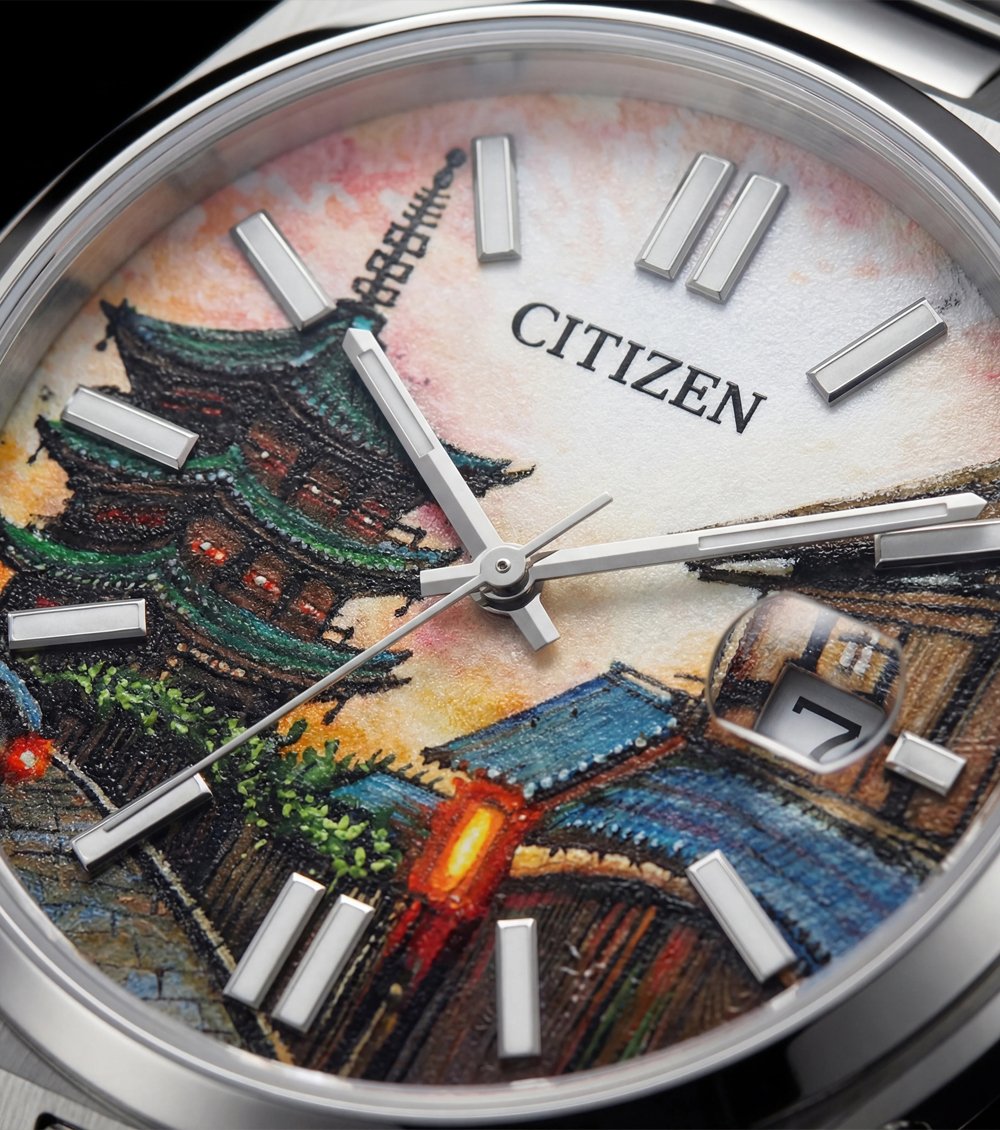 Kyoto Heritage Art Dial Automatic Silver Watch ek elegant aur artistic timepiece hai jo traditional architecture-inspired hand-painted dial ke saath premium appeal deta hai. Dial par detailed scenic artwork depth aur character add karta hai, jo is watch ko ek true collectible banata hai. Applied silver hour markers aur slim hands clean readability ke saath refined balance create karte hain.