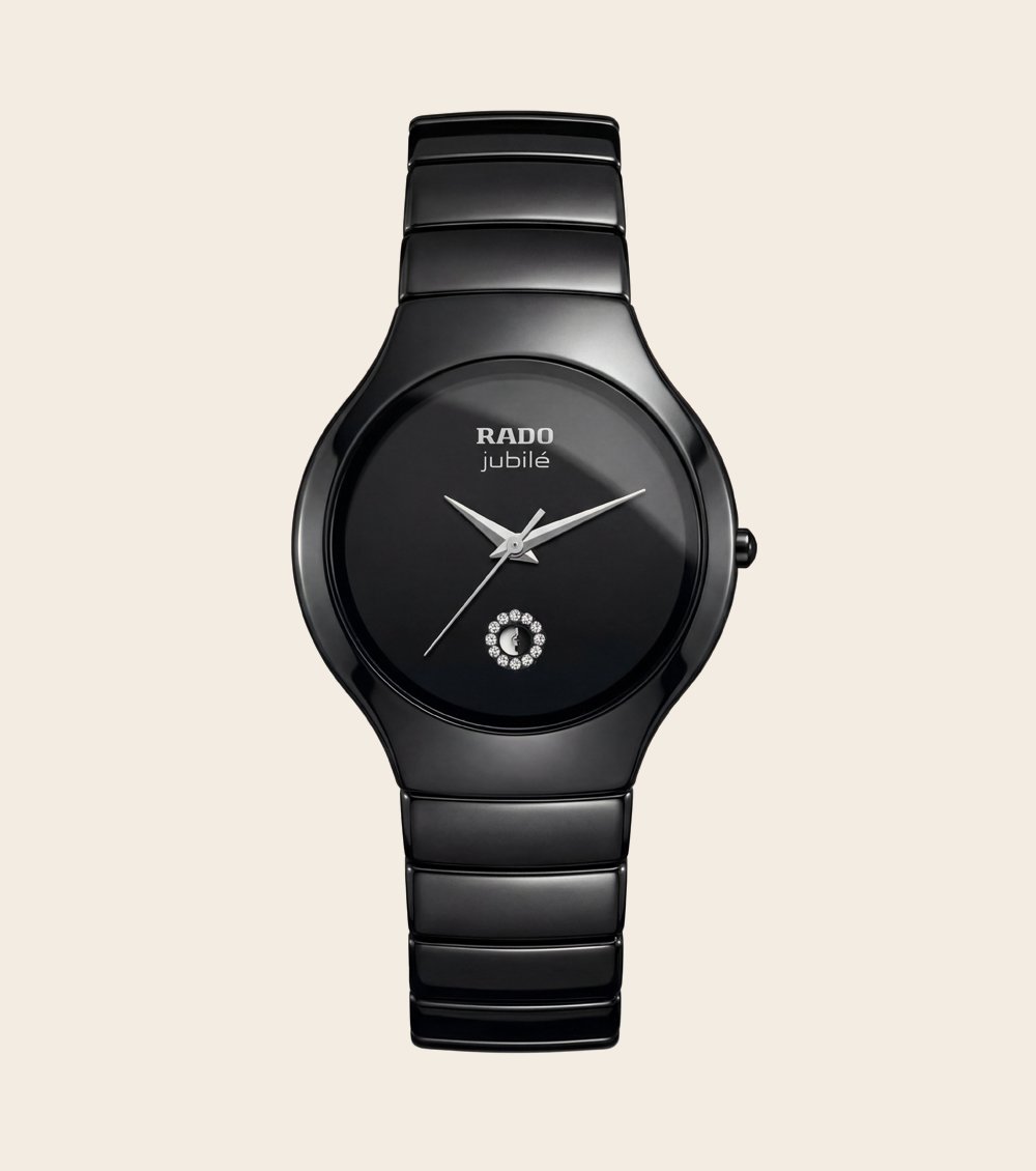 A diamond-framed date window at the lower dial adds a subtle touch of refinement without overpowering the minimalist design. The seamless ceramic bracelet enhances comfort and durability, making it ideal for everyday wear or special occasions.