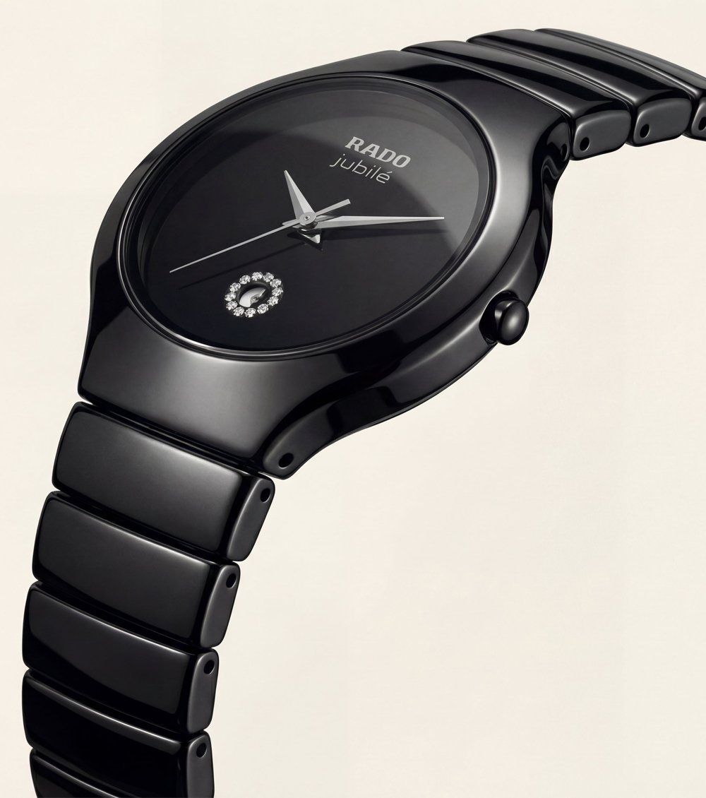This sophisticated black ceramic timepiece delivers a bold yet minimalist luxury statement. Crafted from premium high-gloss ceramic, the watch offers exceptional scratch resistance, lightweight comfort, and a smooth polished finish. The deep black dial creates a striking contrast with silver-tone hands, ensuring a clean and elegant appearance.
