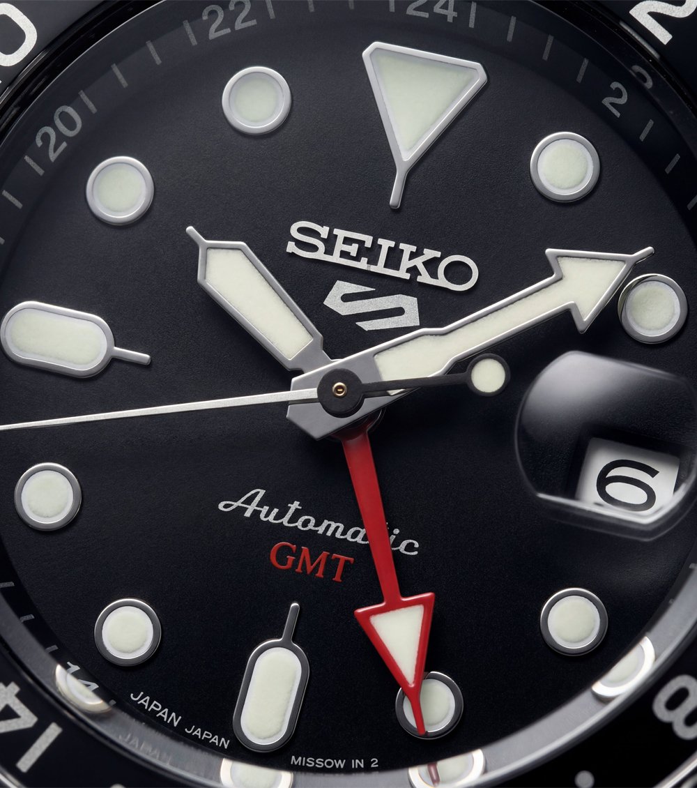 Large luminous hour markers and broad hands ensure excellent visibility in various lighting conditions. The additional GMT arrow hand allows seamless tracking of a second time zone, making this timepiece ideal for frequent travelers and professionals. A magnified date window adds everyday practicality while maintaining the dialรขโฌโขs clean and balanced design.
