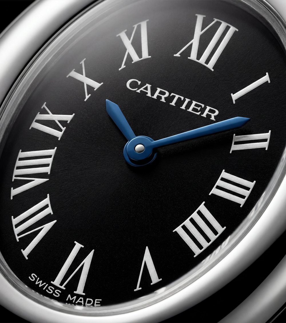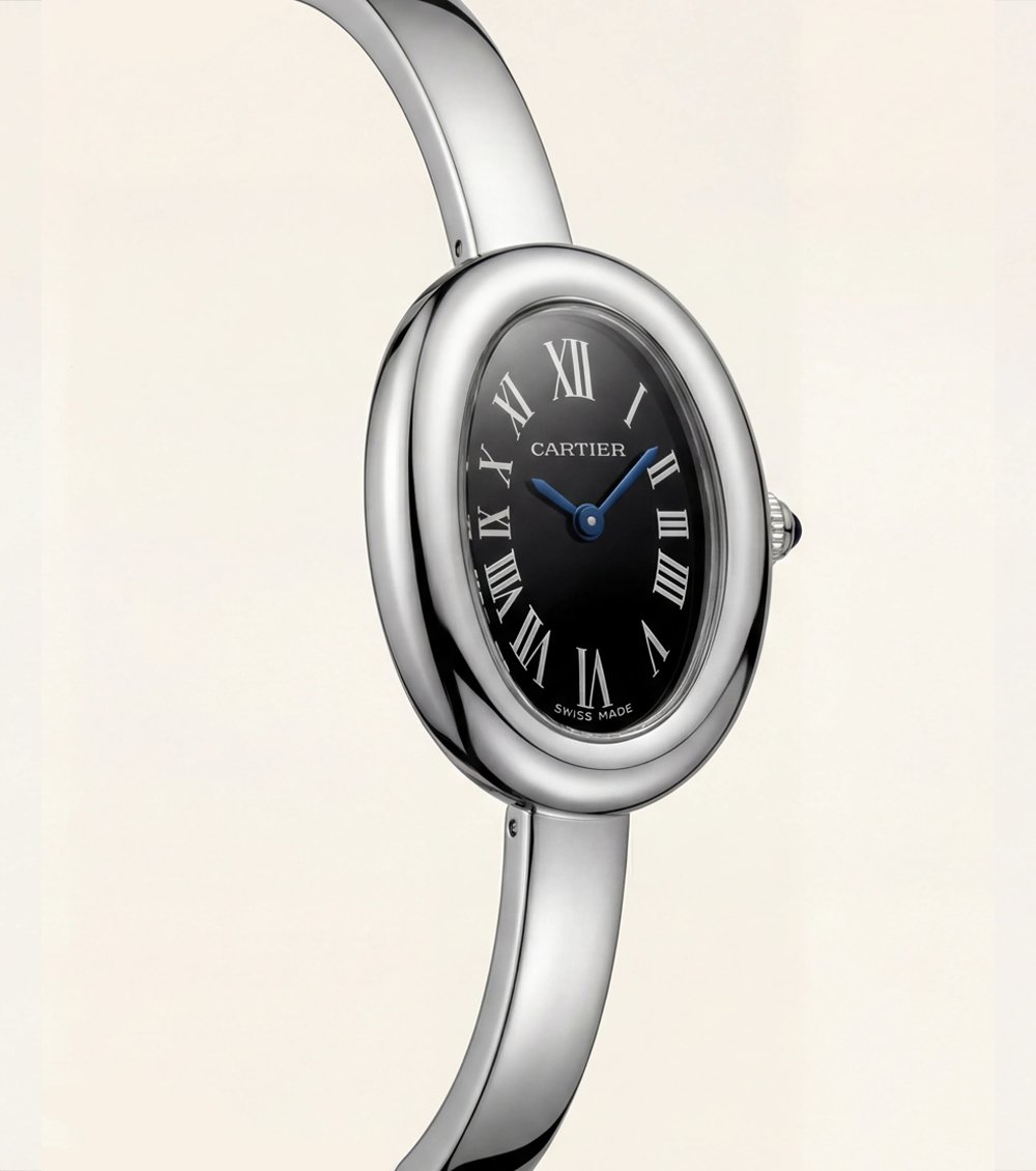 The slim rigid silver bangle bracelet gives this watch a jewelry-like presence โ delicate, graceful, and effortlessly premium. A sapphire-accent crown detail adds an elevated finishing touch, inspired by signature CART!ER styling.