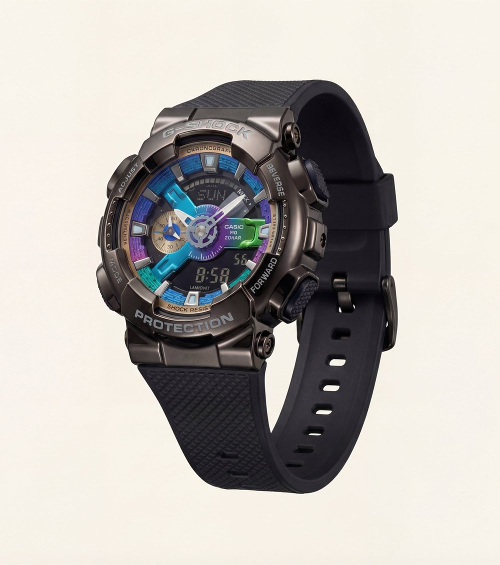 | Dial Color | Multi-Tone (Blue / Purple / Green Accents) |