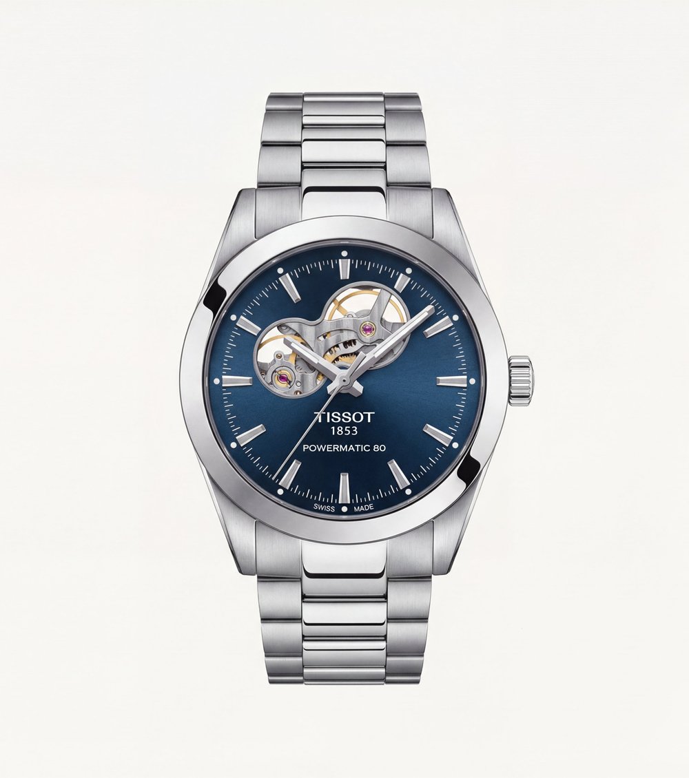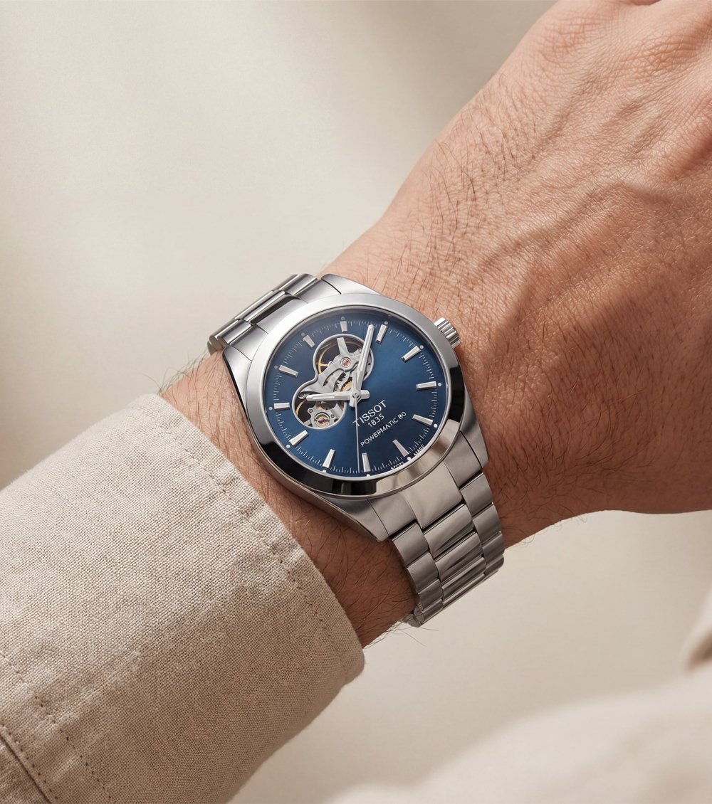 This refined automatic watch features a deep ocean-blue dial paired with an elegant open-heart design, delivering a perfect balance of classic sophistication and mechanical charm. The exposed movement window adds depth and visual interest while keeping the dial clean and well-proportioned.