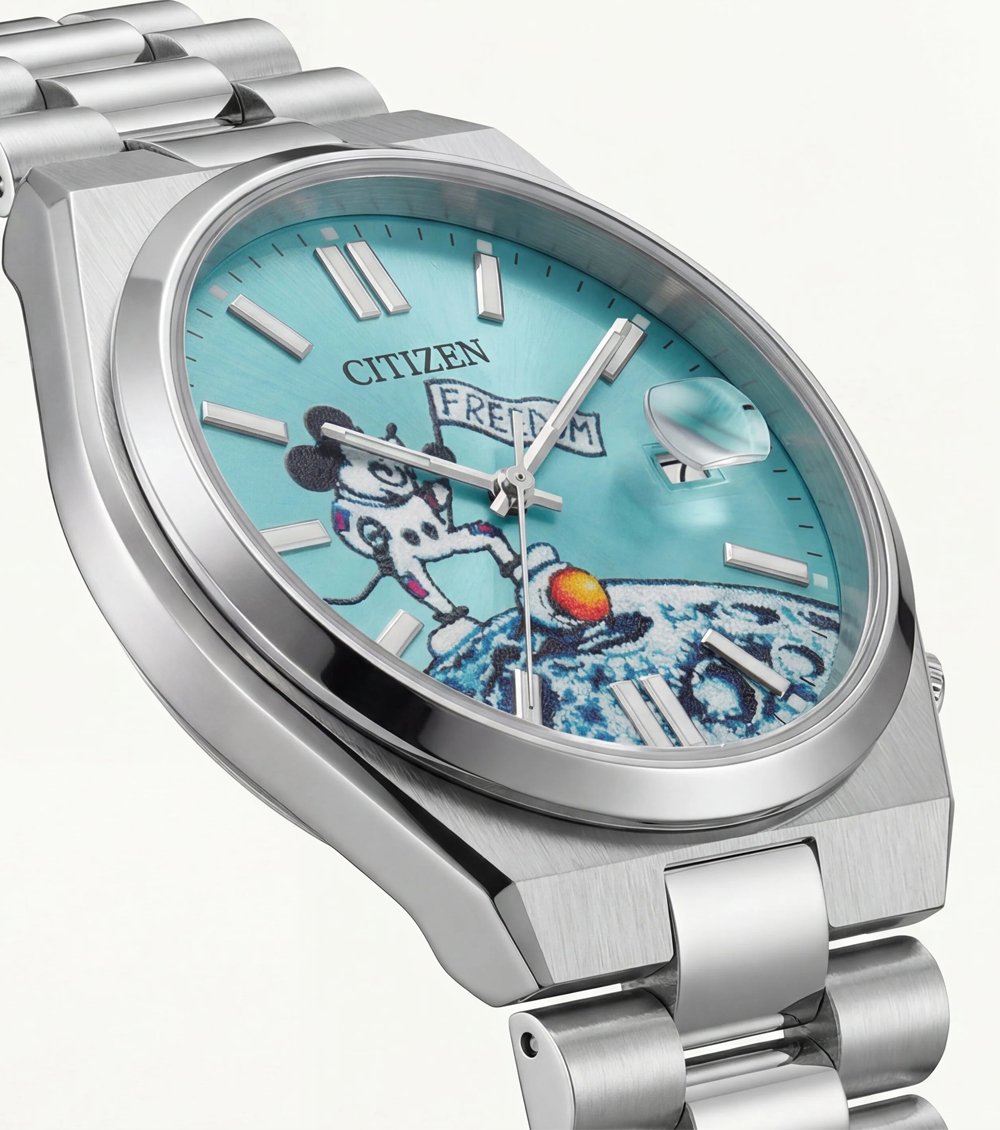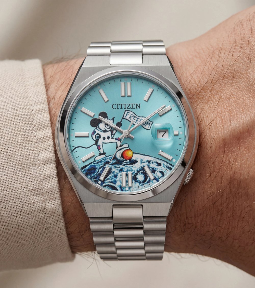 Ye premium Men’s watch ek playful aur artistic dial ke saath aata hai jisme ocean wave artwork aur adventure-themed character design diya gaya hai. Soft aqua blue dial background ke saath textured illustration watch ko ek unique luxury-art look deta hai. Clean silver hour markers aur sharp hands readability ke saath modern elegance provide karte hain.