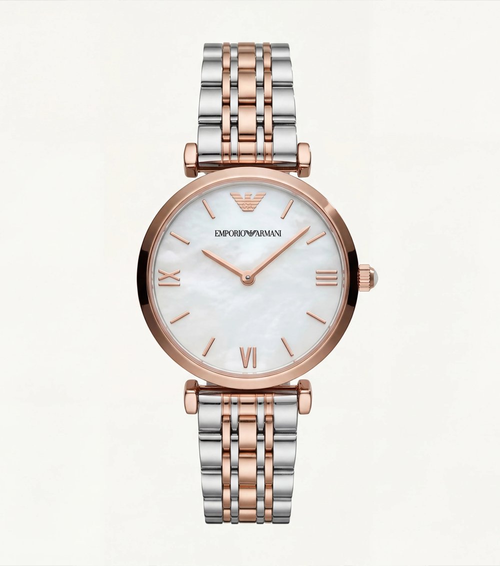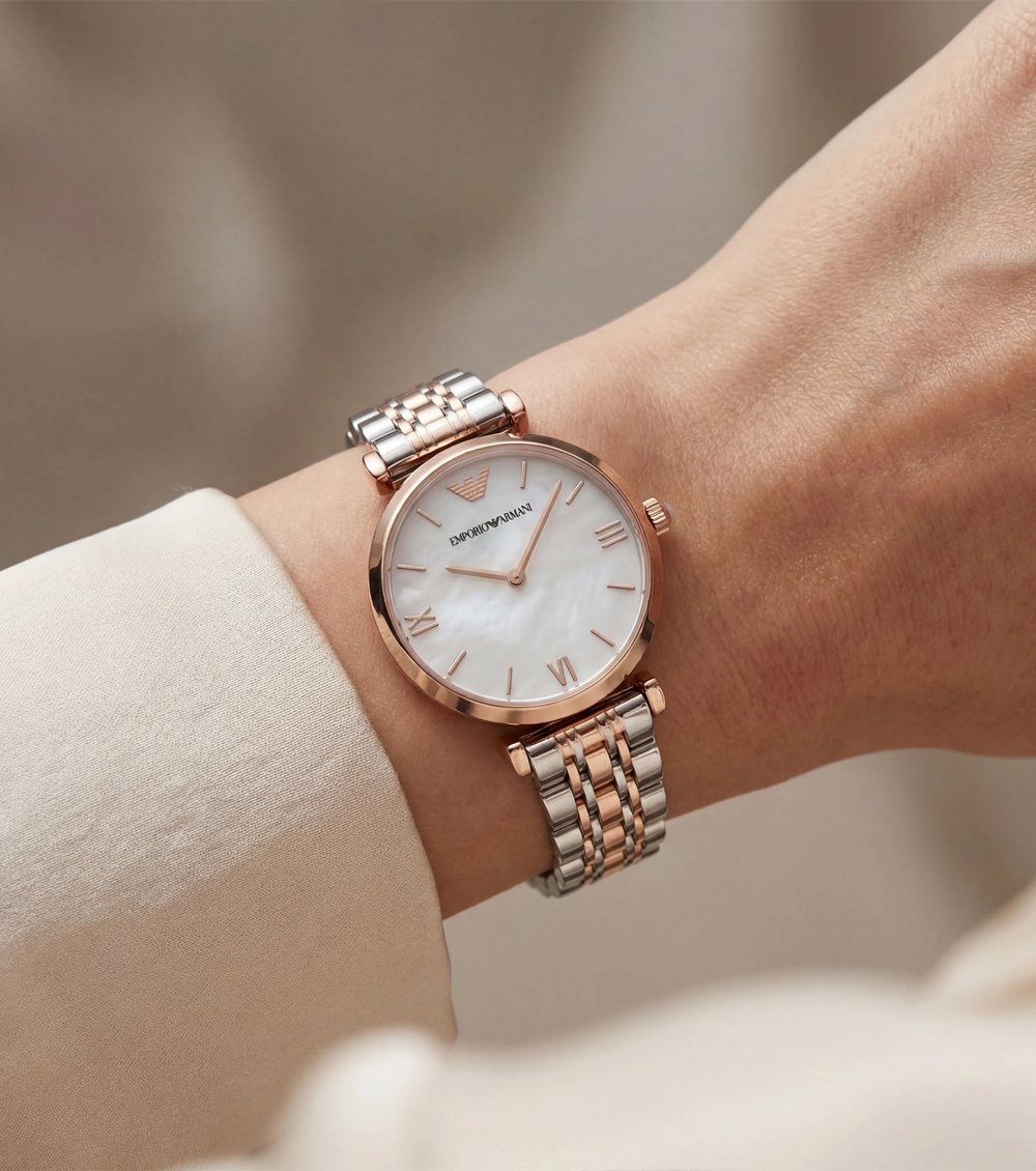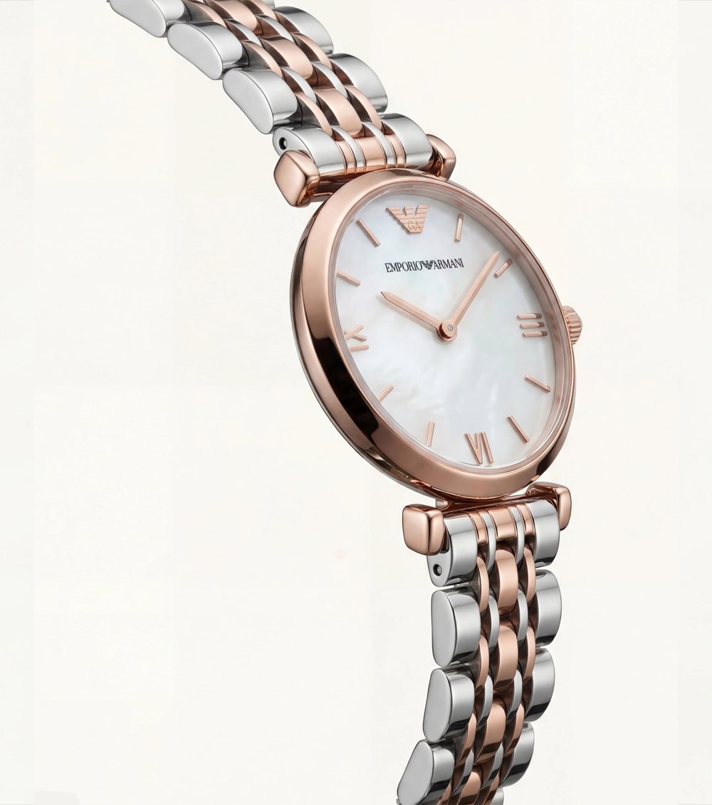 This two-tone luxury watch is designed for women who appreciate understated beauty with refined detail. The luminous mother-of-pearl dial reflects soft iridescent tones, creating a graceful and elegant presence on the wrist.