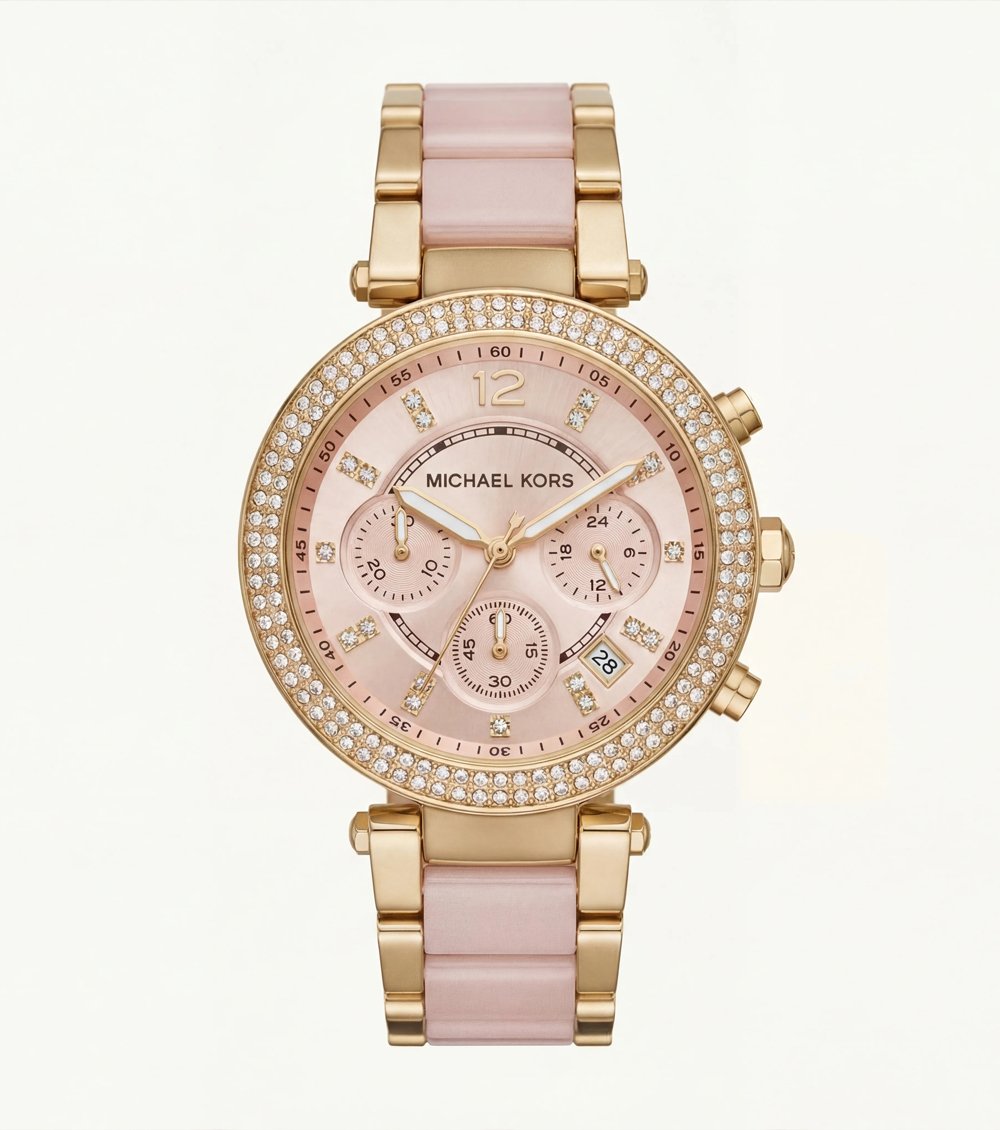 | Bracelet Material | Stainless Steel with Blush Accent Links |
