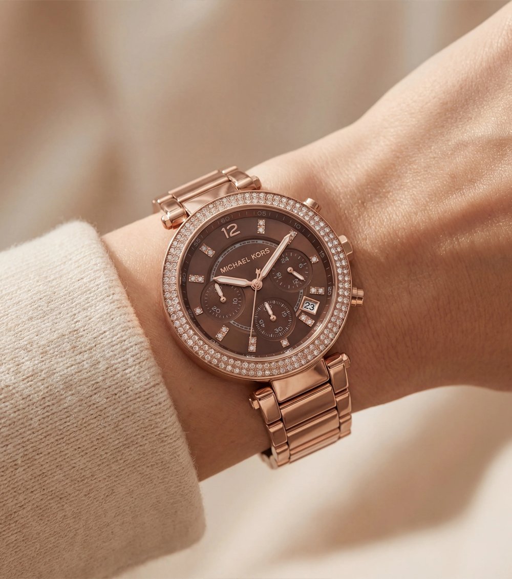 Inspired by the signature styling of M1CHAEL K0RS, this piece is designed for women who love rich tones, confident luxury, and standout sparkle.