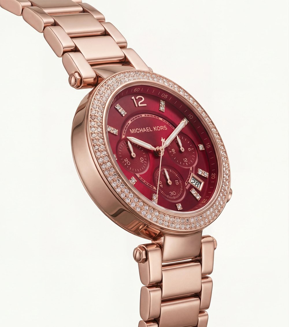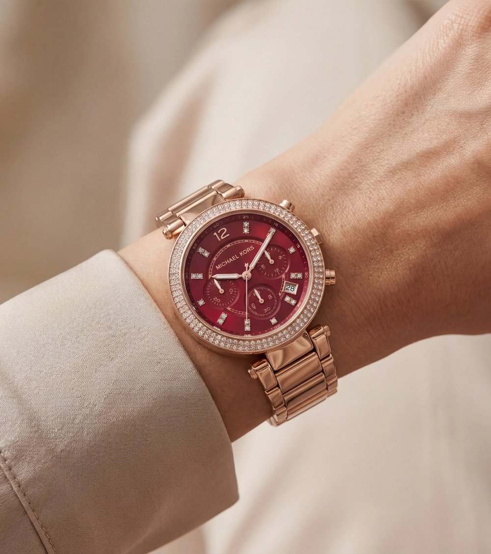 Inspired by the signature styling of M1CHAEL K0RS, this timepiece is designed for women who love rich color, bold sophistication, and standout elegance.