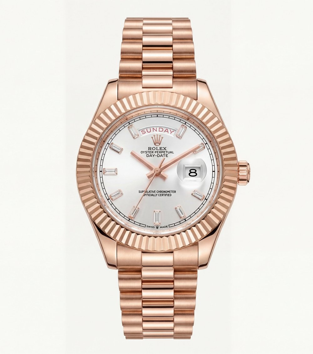 Rose Gold Day-Date President-Style Luxury Men’s Watch with Fluted Bezel