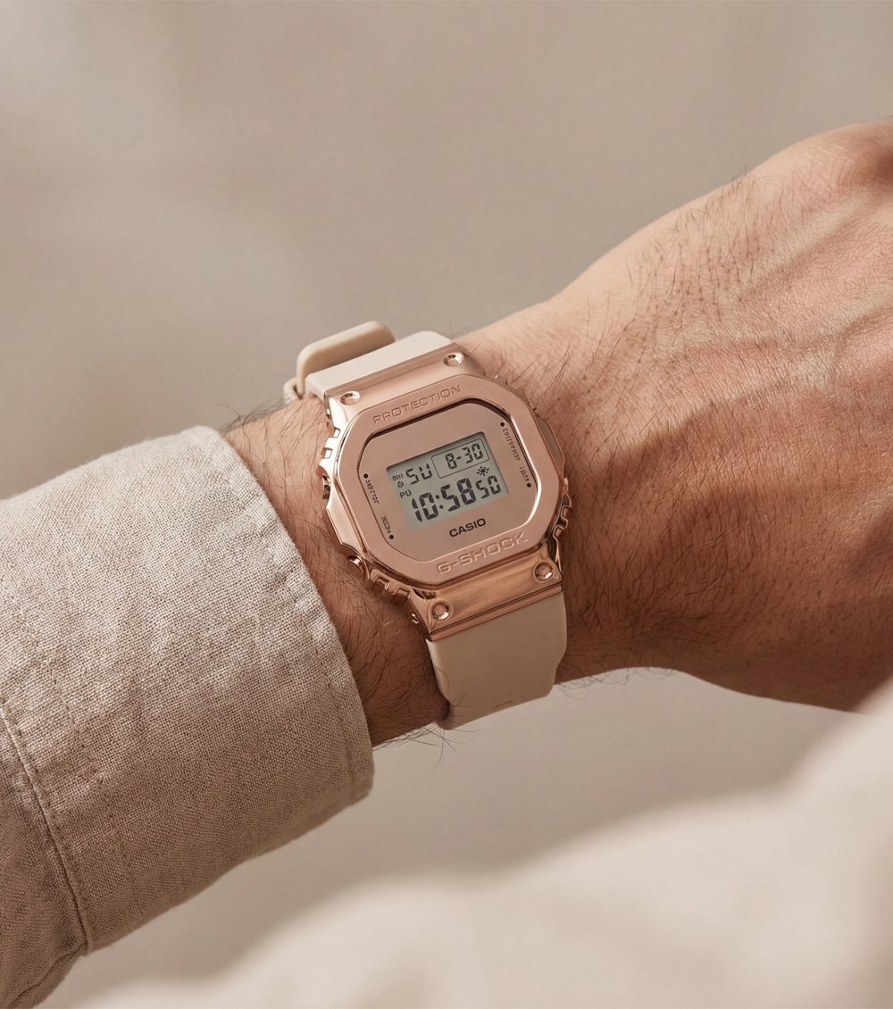 Designed for those who prefer understated luxury, this rose gold digital watch pairs refined metallic detailing with a soft beige resin strap for a clean, contemporary aesthetic. The brushed rose gold square case adds a subtle statement of sophistication, while the neutral strap brings effortless versatility to any outfit.