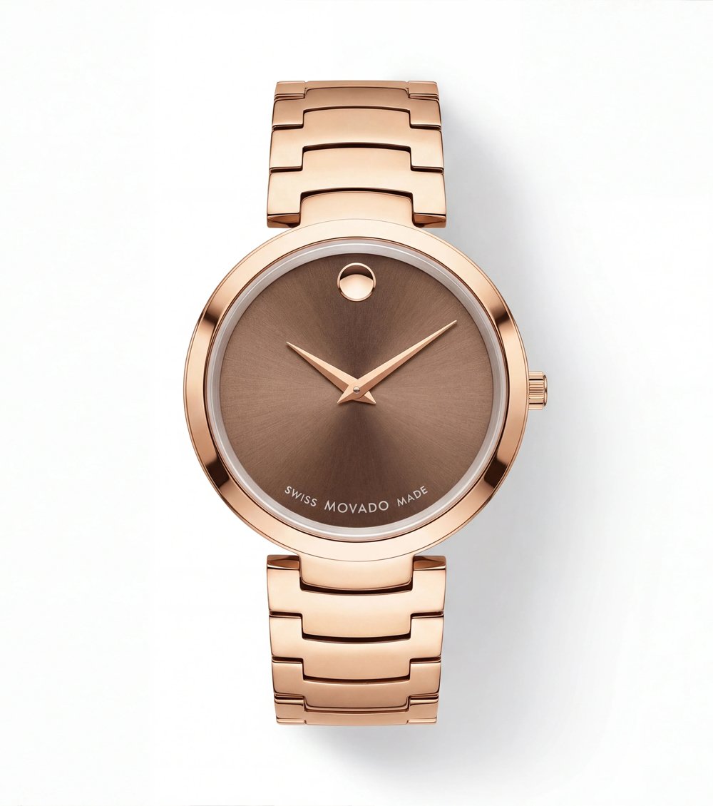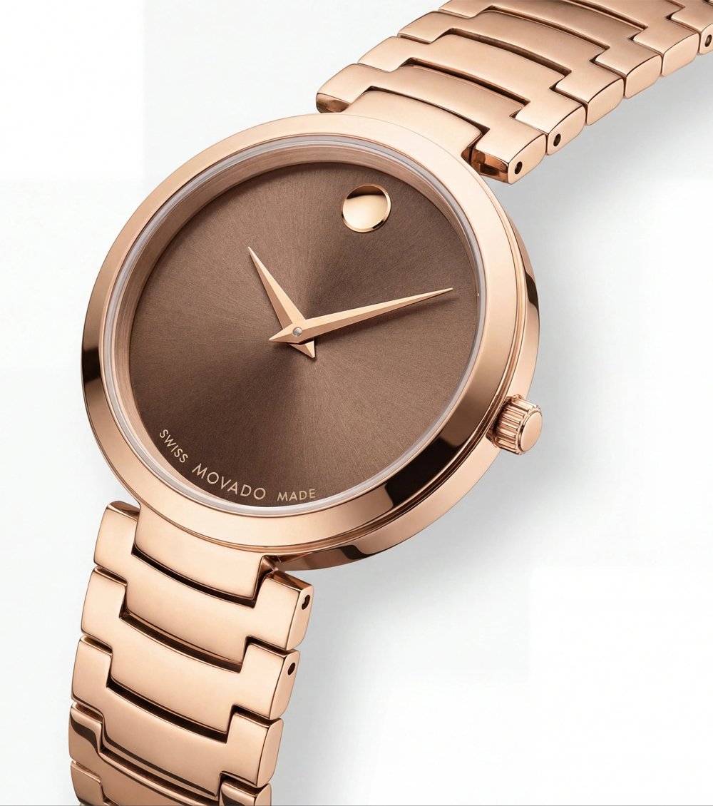 The rich sunray brown dial delivers depth and elegance, subtly shifting tones as it catches the light. A signature single dot marker at 12 oรขโ‚ฌโ„ขclock creates the iconic minimalist focal point, while slim rose-gold hands glide gracefully across the dial for a perfectly balanced design.