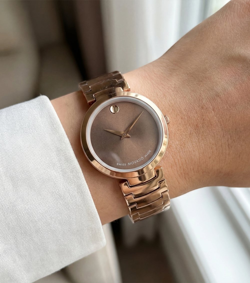 The seamless rose-gold link bracelet enhances both comfort and elegance, allowing the watch to sit naturally on the wrist. Designed for women who appreciate understated luxury and modern design, this timepiece offers effortless sophistication for both everyday wear and refined occasions.
