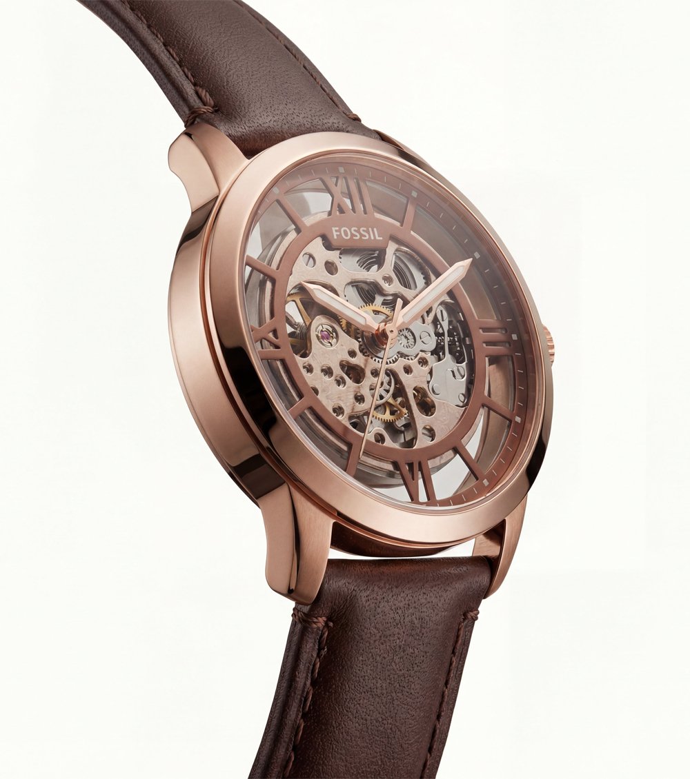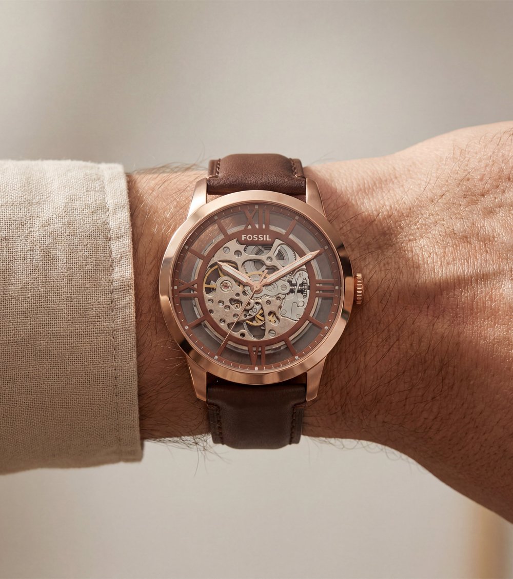 Roman numeral hour markers and slim rose gold hands enhance readability while preserving the watchรขโฌโขs classic aesthetic. The rich brown leather strap completes the look with timeless sophistication, making this timepiece ideal for formal occasions, business wear, and elegant everyday styling.