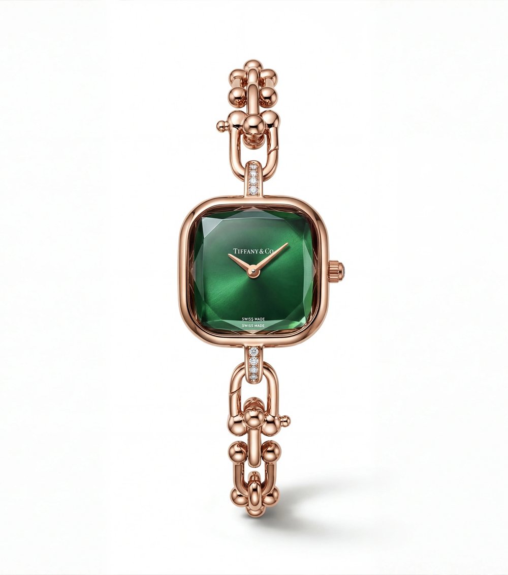 Minimalist rose gold hands maintain a clean and refined dial layout, allowing the vibrant dial color to remain the focal point of the design. Delicate diamond-accent connectors between the case and bracelet introduce subtle brilliance, elevating the watch into a true jewelry-inspired statement piece.
