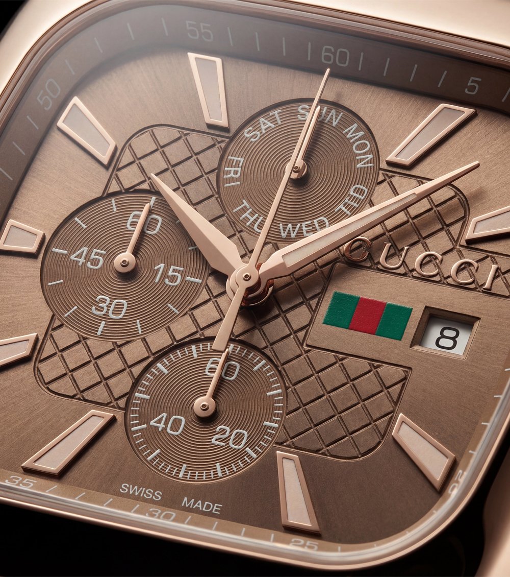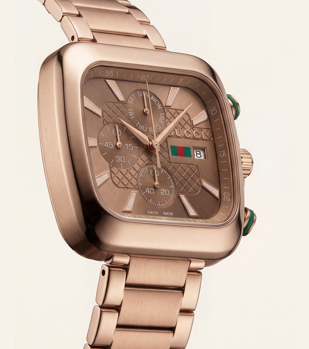 Rose Gold Square Chronograph Men’s Watch with Day-Date Display