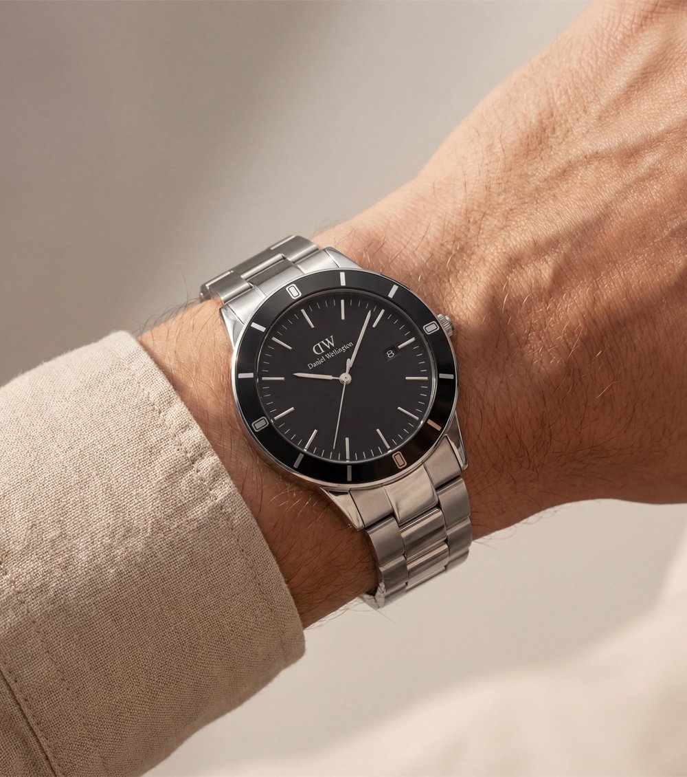 The fixed black bezel adds depth and character without overpowering the minimalist design. Crafted with a solid stainless steel bracelet, this watch offers both durability and comfort for everyday wear. A subtle date window enhances practicality, making it suitable for office, formal events, and smart-casual styling. A timeless piece that balances simplicity, functionality, and sophistication.