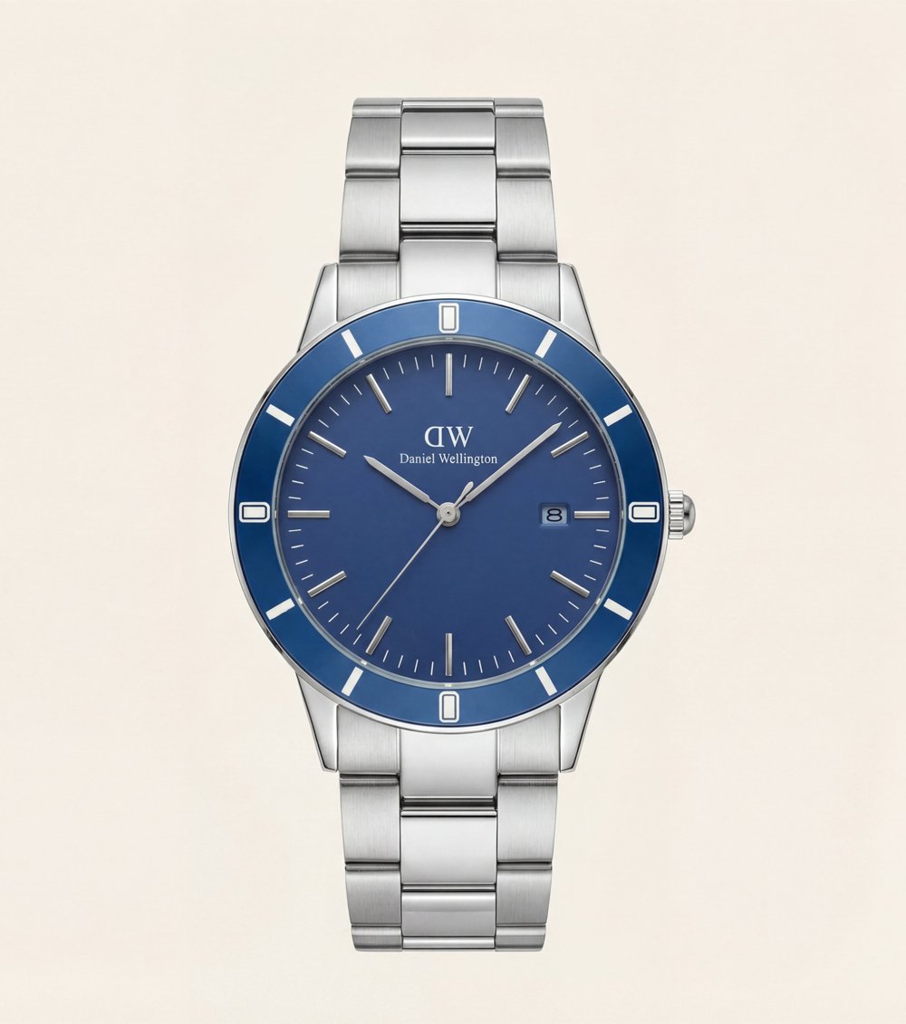 This refined Men’s watch showcases a striking blue dial paired with a sleek silver-tone stainless steel body, creating a perfect balance of elegance and modern design. The rich blue bezel enhances the overall depth, while slim index hour markers and polished hands offer a clean, easy-to-read layout.