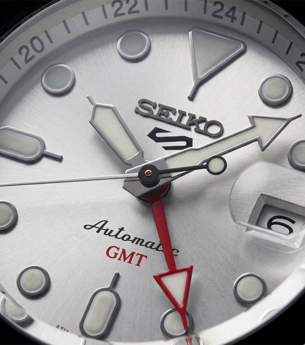 Large luminous hour markers and broad hands ensure excellent visibility in various lighting conditions. The additional GMT arrow hand allows seamless tracking of a second time zone, making this timepiece ideal for frequent travelers and professionals. A magnified date window adds everyday practicality while preserving the dialรขโฌโขs balanced and refined layout.