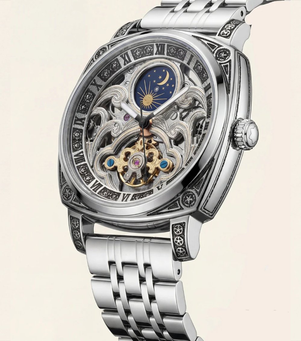 Built with a polished silver-tone stainless steel case and bracelet, this timepiece is designed for men who appreciate complex craftsmanship and timeless elegance. Ideal for formal wear, special occasions, and premium collections, it delivers a bold statement of mechanical sophistication. Brand: Montblanc.