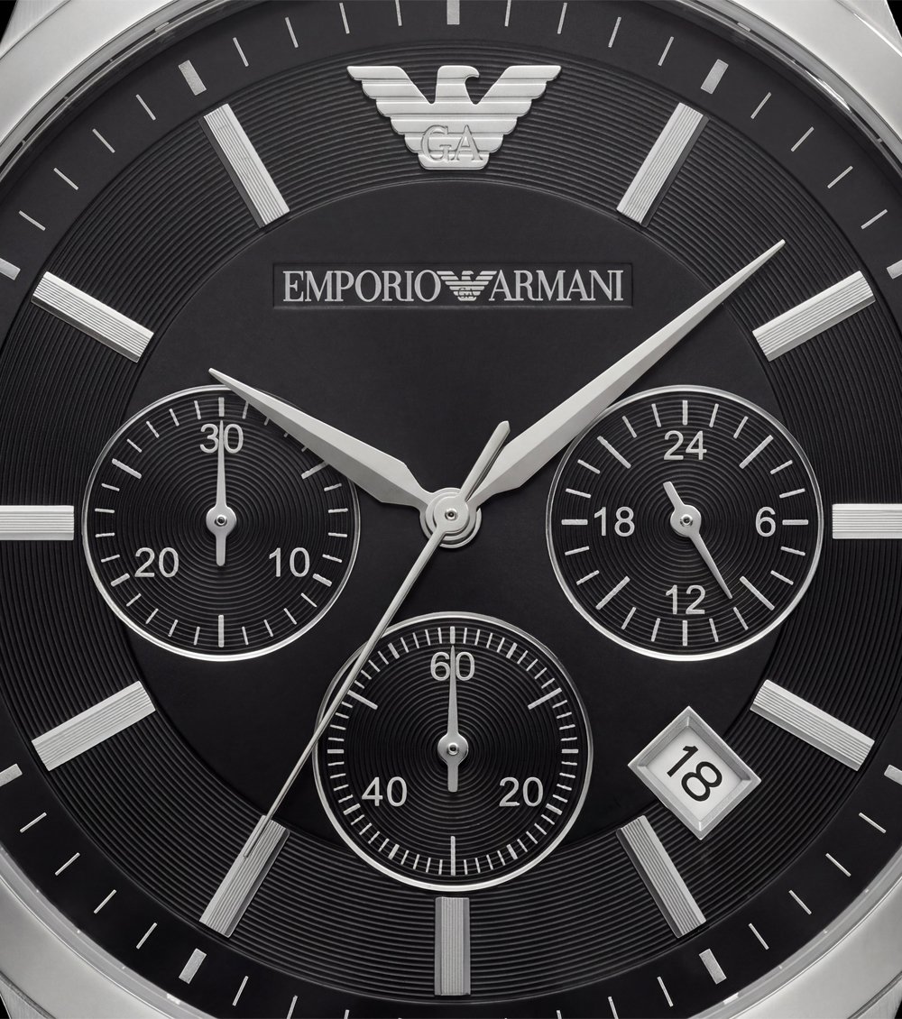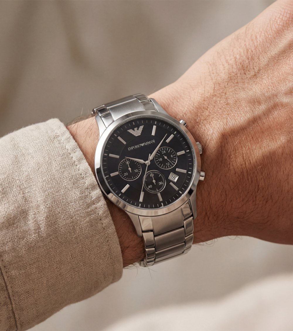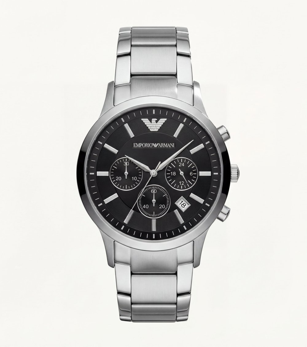 This premium silver stainless steel chronograph-style watch features a bold black textured dial with multi-subdial detailing for a refined and masculine look. Designed for modern men, it blends elegance with everyday functionality.