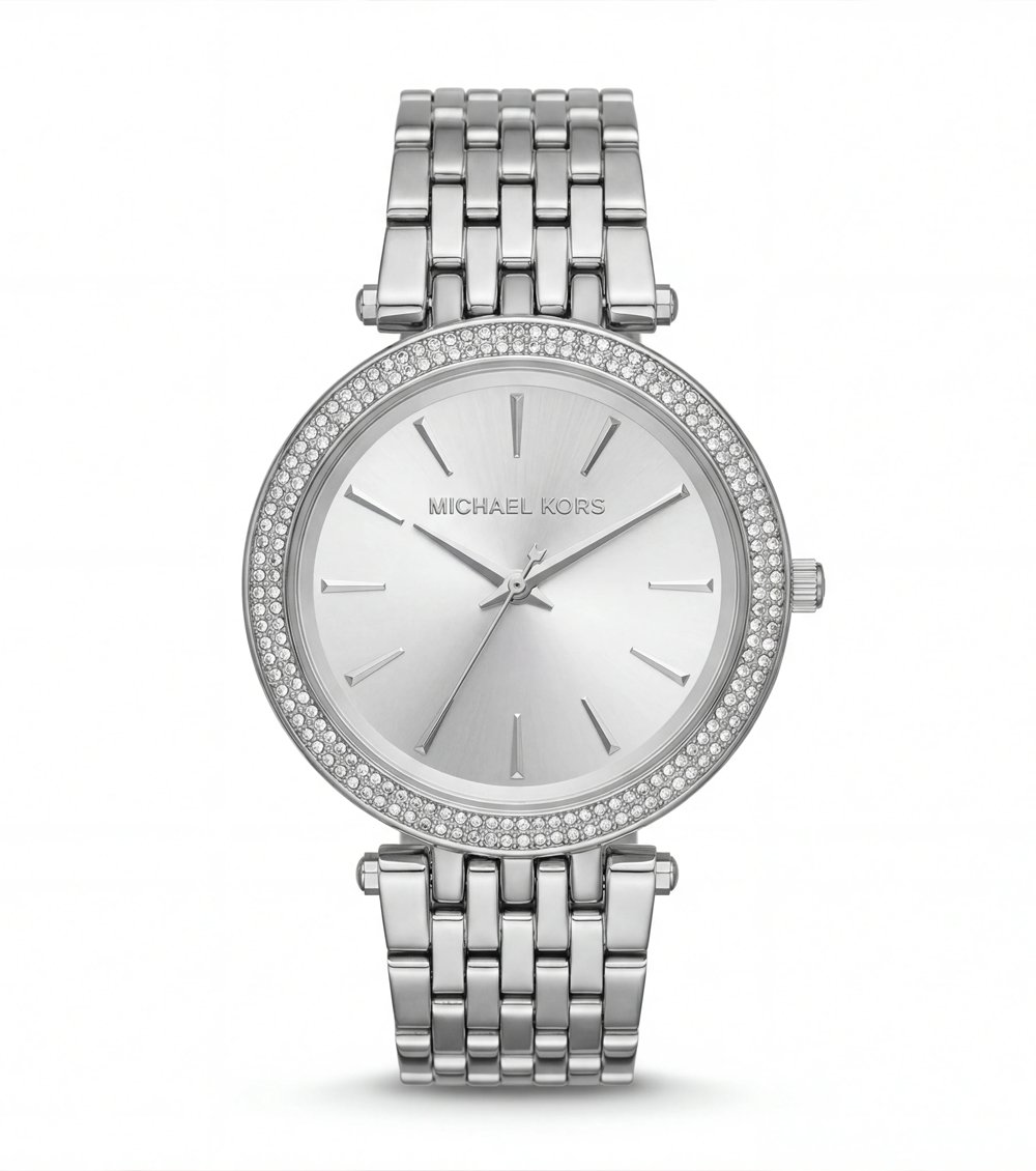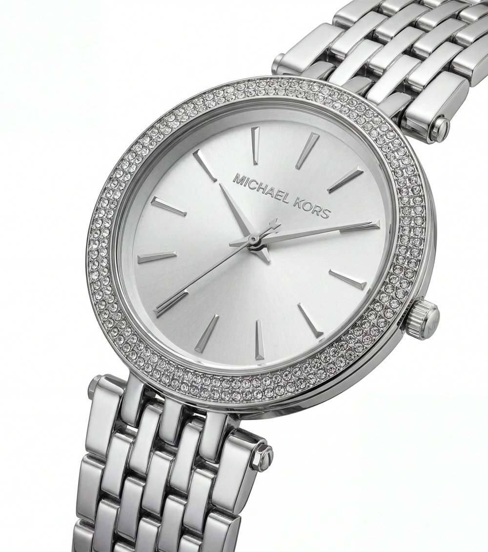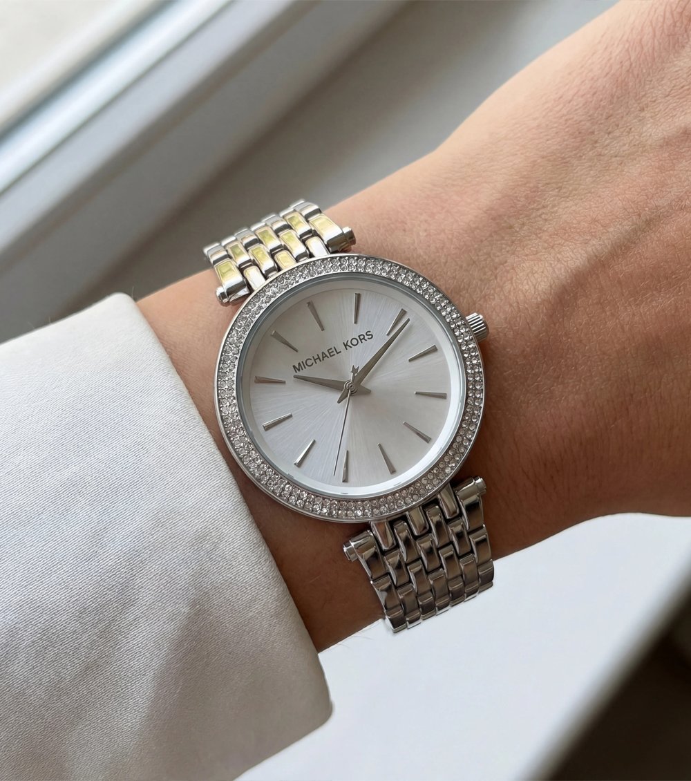 This sophisticated timepiece blends minimalist design with subtle glamour, creating a watch that feels both luxurious and effortlessly wearable. The polished stainless steel case and bracelet</strong> provide a sleek monochrome aesthetic that pairs beautifully with both everyday outfits and evening looks.