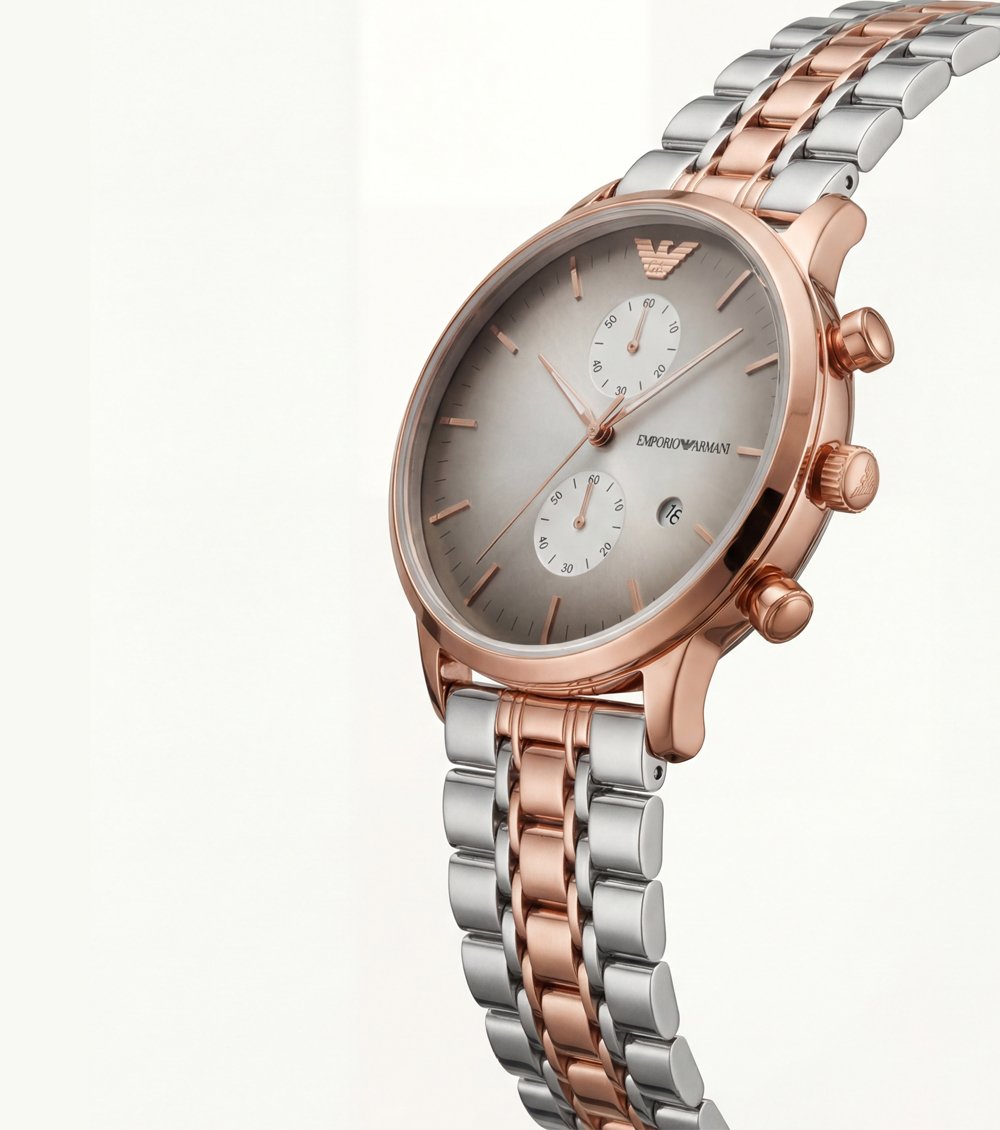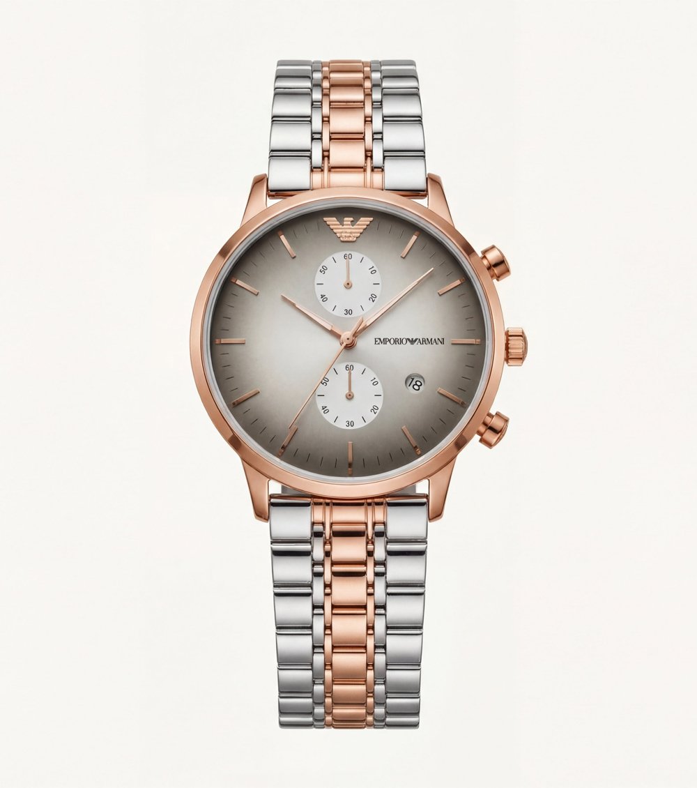 Refined elegance meets modern precision in this two-tone chronograph Men’s watch, crafted for those who appreciate understated luxury. The warm rose gold case pairs effortlessly with a polished silver and rose gold bracelet, creating a balanced, premium aesthetic suitable for both business and evening wear.
