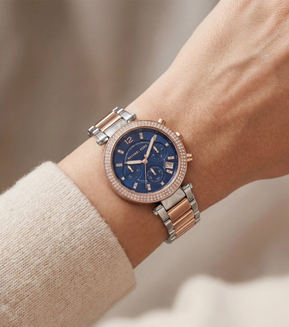Inspired by the signature styling of M1CH@3LK0RS, this watch is designed for women who appreciate statement elegance, contemporary shine, and confident luxury styling.