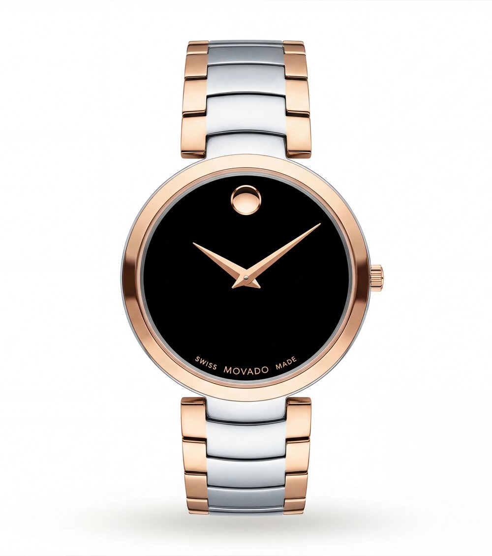 This sophisticated timepiece blends contemporary minimalism with refined two-tone styling. The polished rose-gold bezel</strong> pairs beautifully with the sleek stainless steel and rose-gold bracelet</strong>, creating a balanced and versatile luxury aesthetic.