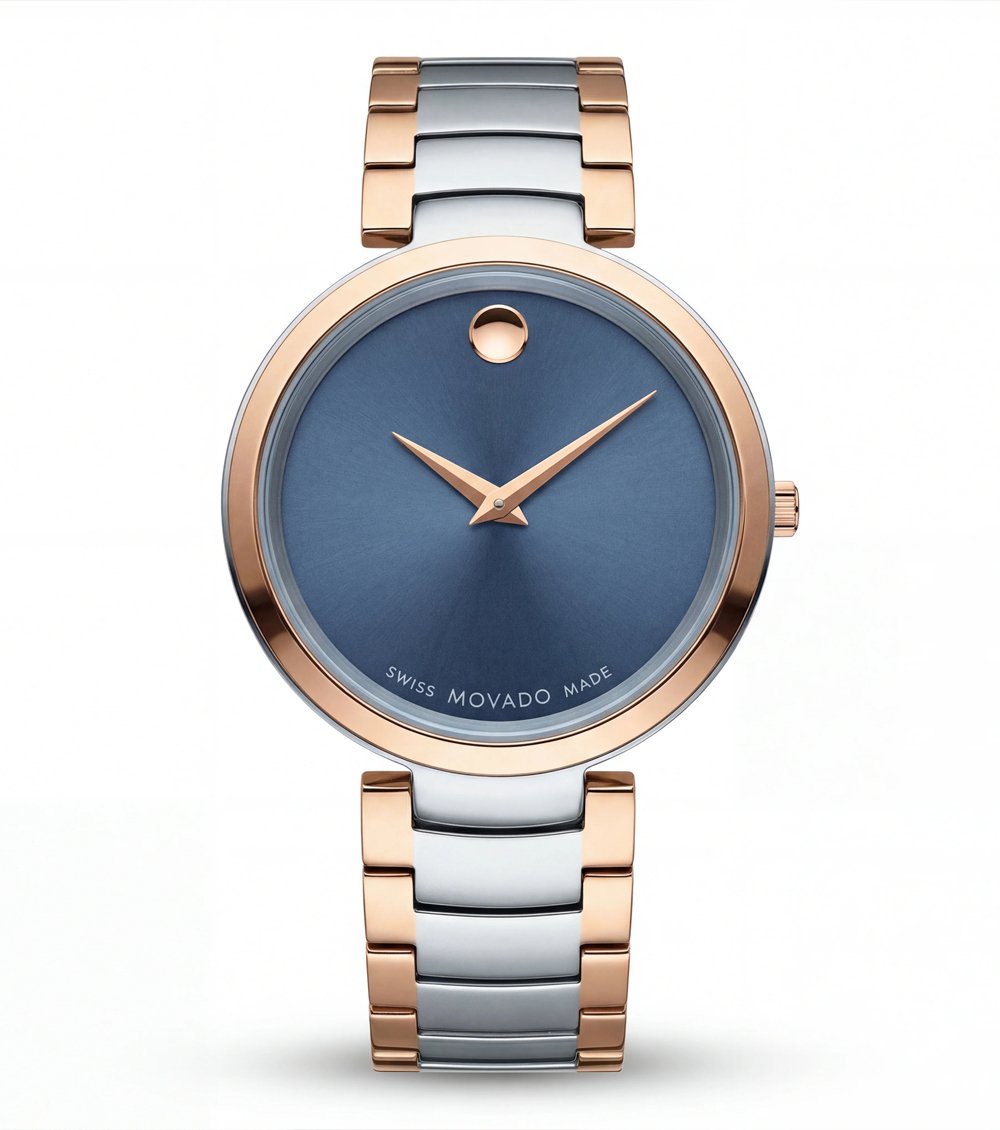 This refined timepiece blends contemporary minimalism with luxurious two-tone styling. The polished rose-gold bezel</strong> paired with a sleek stainless steel and rose-gold bracelet</strong> creates a balanced, modern aesthetic that feels both elegant and versatile.