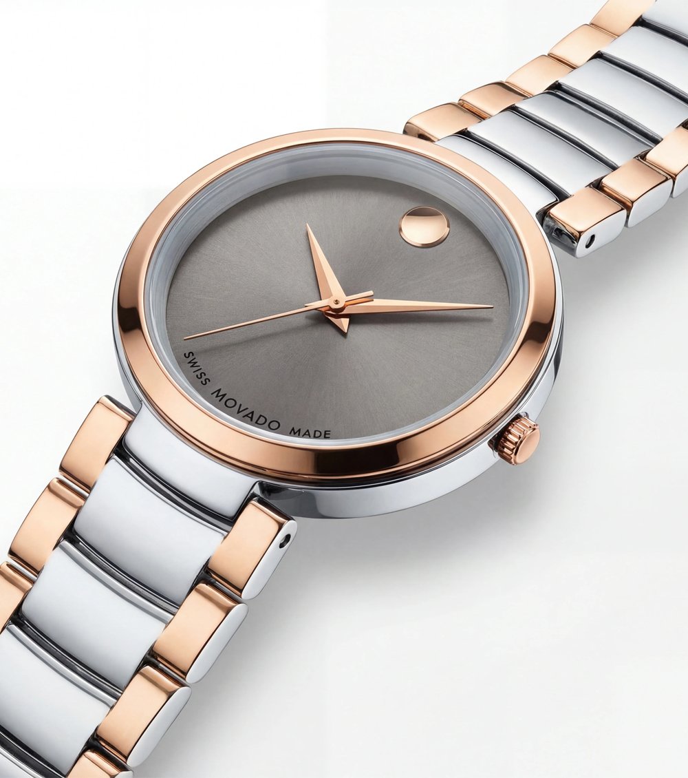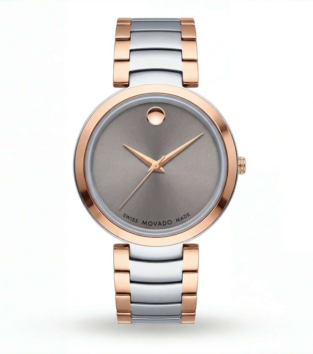 This sophisticated timepiece blends contemporary minimalism with refined two-tone styling. The polished rose-gold bezel</strong> paired with a sleek stainless steel and rose-gold bracelet</strong> creates a balanced design that feels both elegant and versatile.